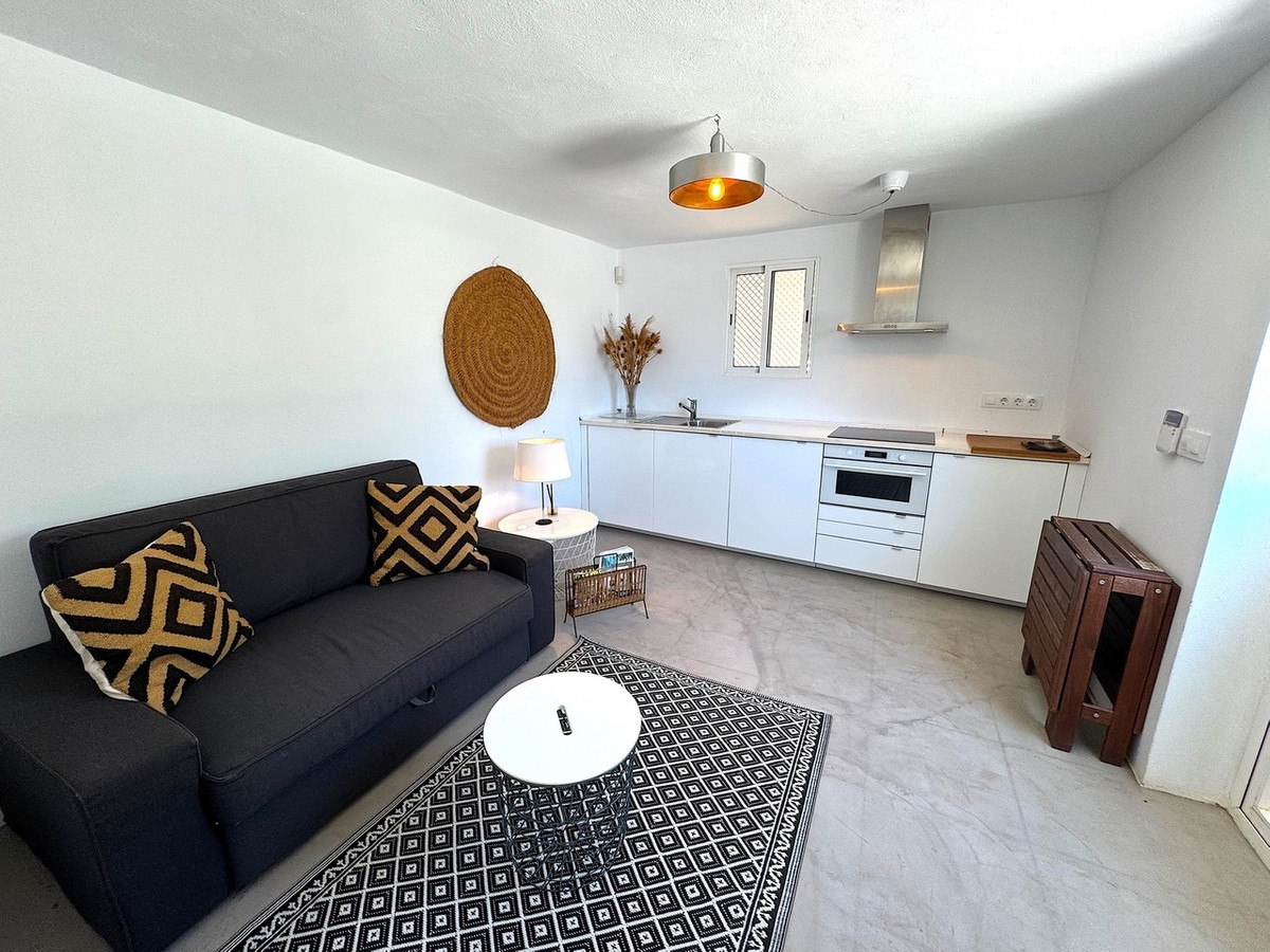This exceptional detached villa, offering two bedrooms and two bathrooms, is set on a private plot, just a short stroll from Mojacar's golden beachfront.