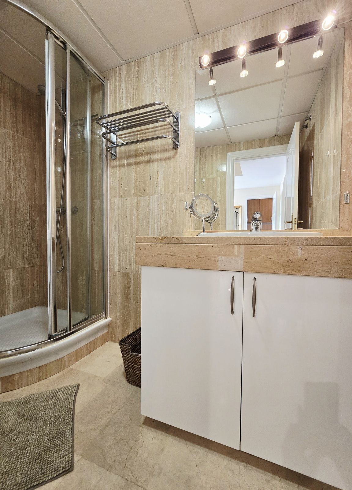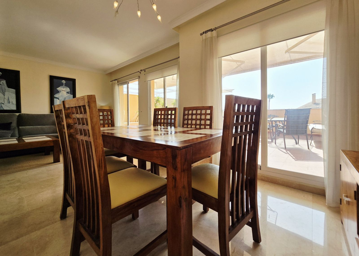 This bright two-storey penthouse is in good condition and comprises a large living and dining room with access to a spacious terrace. The kitchen is located at the rear, as is the second bedroom. A complete family bathroom is also on this level.
