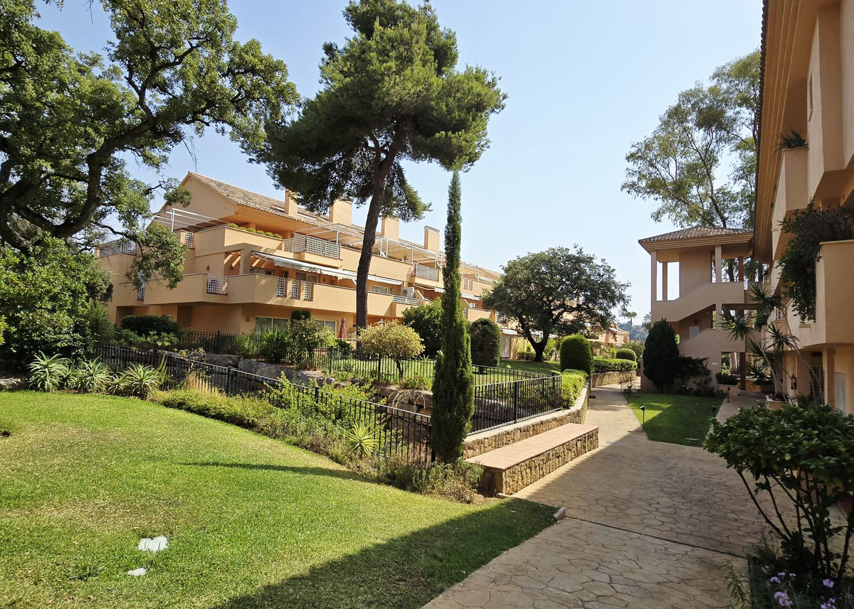 Few places in East Marbella boast such spectacular gardens, large communal pools, and extensive amenities like this resort-style development. Amid the buildings, planters, and walkways, you'll find eucalyptus trees towering over 50 metres, more than 100 varieties of ornamental plants, colourful bougainvillaeas, and century-old cork oaks.