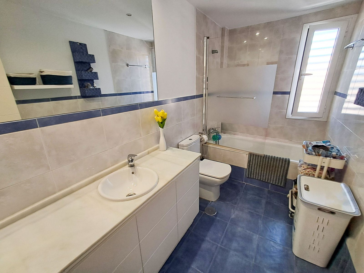 First floor: On this level, to the left, there is a spacious open-plan living room with access to the property's patio – an area with a barbecue designed for family enjoyment and perfect for children. On the same floor, the house also offers a fully fitted kitchen with direct access to the patio, 1 bathroom, and a double bedroom with its own private terrace.