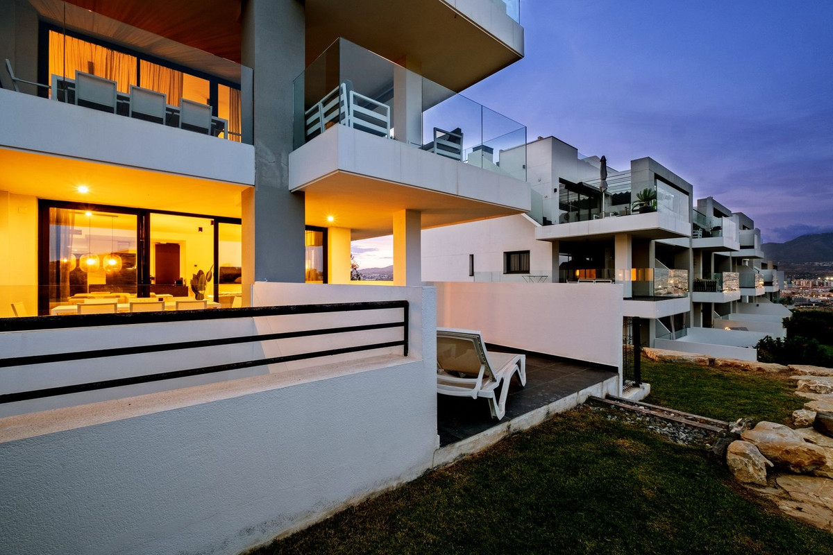 Featuring 4 spacious bedrooms and 2 full bathrooms, the open-plan kitchen flows seamlessly into the living area, creating a bright and contemporary space. Unlike other apartments in the complex, this home boasts a lawn garden, a rear terrace, a side terrace, and a front terrace—ensuring constant sunshine, maximum privacy, and spectacular views of the ocean, the nearby nature reserve, and the Mijas hills.