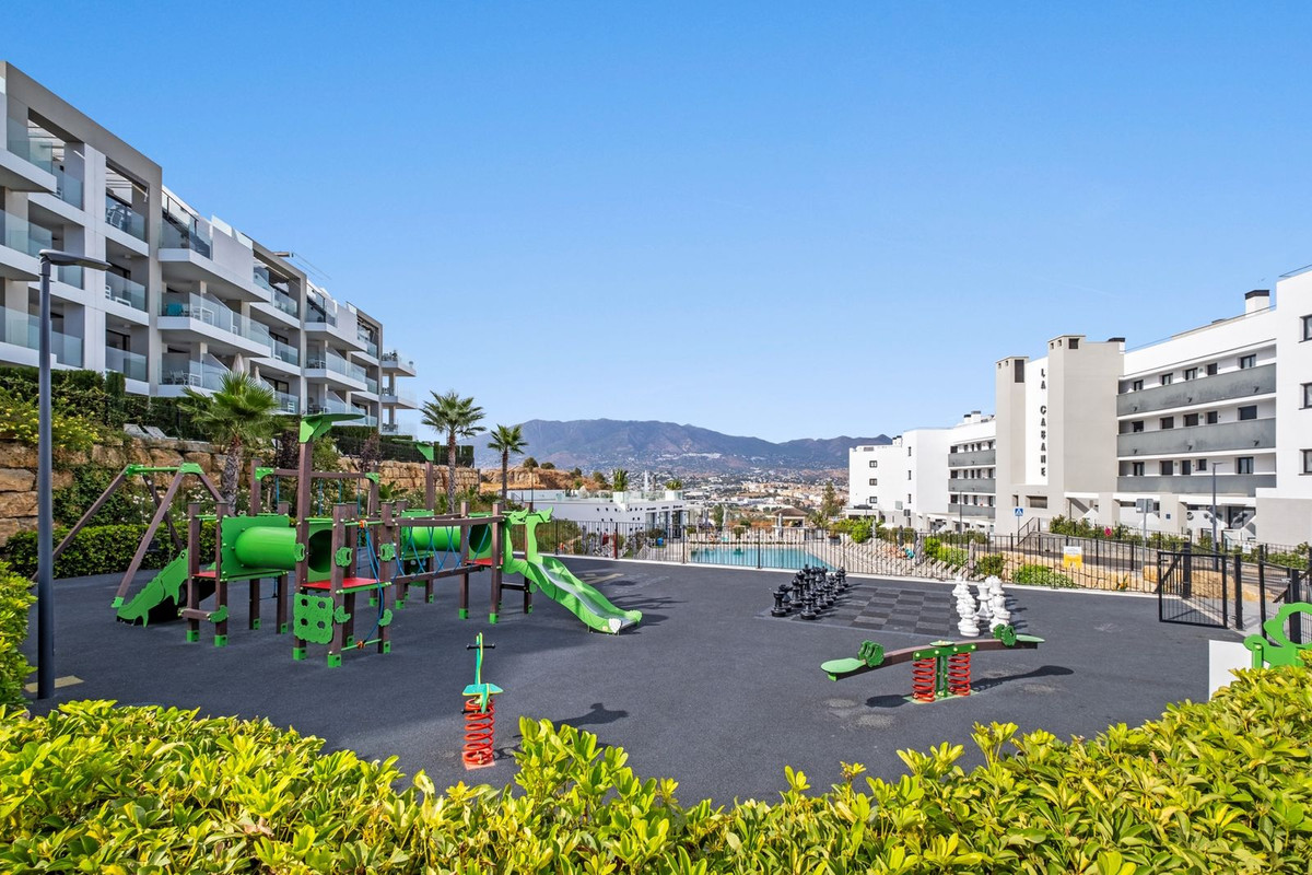 Inside, you'll find a bright living area with large sliding glass doors that open onto a partially covered terrace, creating a seamless indoor-outdoor space. The modern open-plan kitchen features a large cooking island and is fully equipped with oven, electric hob, dishwasher, and Nespresso machine.