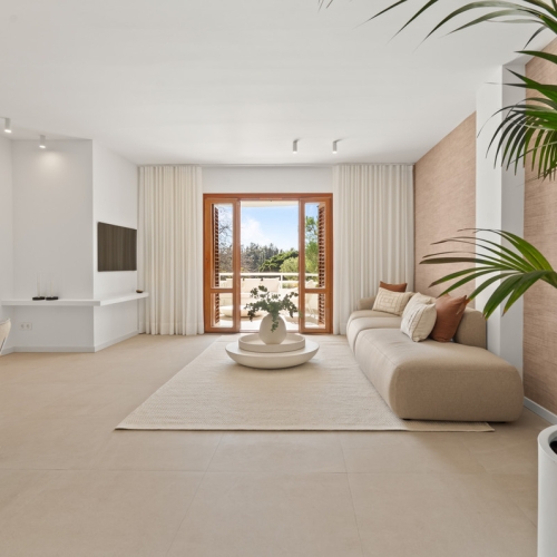 Welcome to this spacious 2 bedroom and 2 bathroom apartment in the well-kept and perfectly situated urbanization of Royal Gardens. The apartment has an open plan kitchen connecting nicely with the living area. The terrace has a dining area with beautiful views of the garden and the mediterranean see. The terrace also has a smaller part for barbeque or relaxing outside the master bedroom. This is the perfect place if you appreciate leaving the car in the garage while walking to the beach, shops or restaurants. In the near surrounding you find some of the best golf courses in the area. The apartment comes with a garage and a storage room which you can reach easily with the elevator. The urbanization is a secure and gated community with 24 h surveillance cameras.