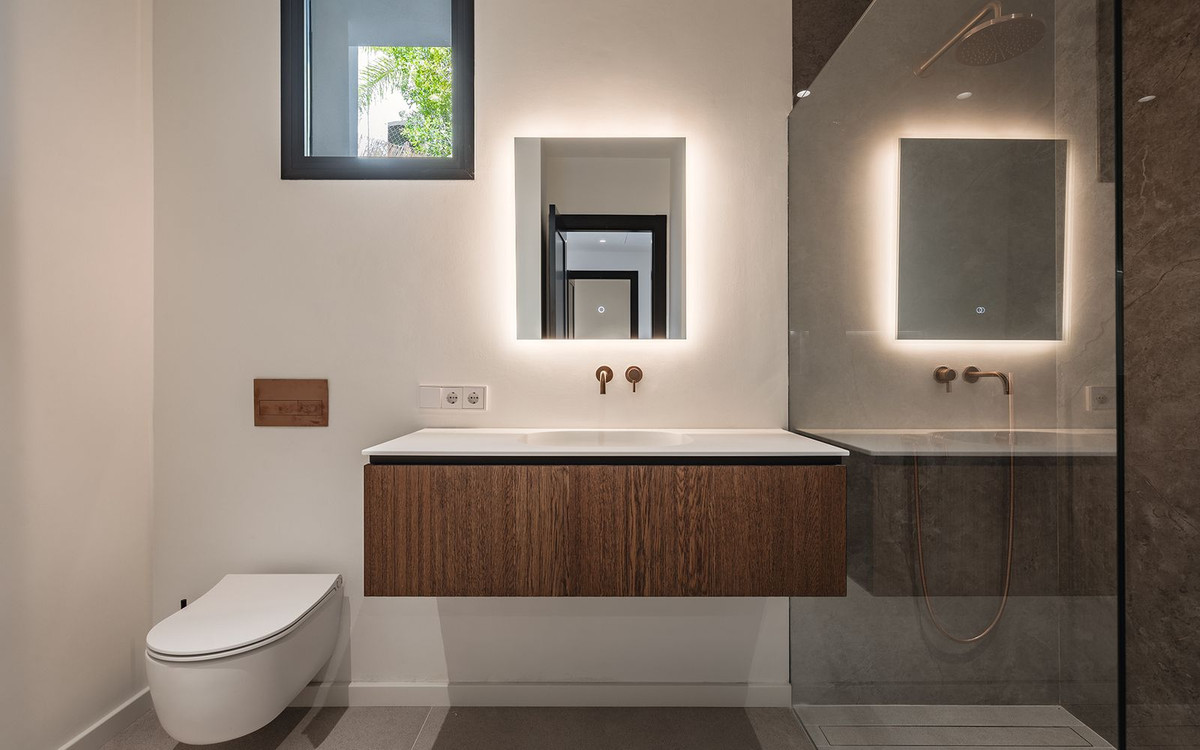 This elegantly renovated luxury villa offers a refined lifestyle within an exclusive, secure gated complex. Enjoying a desirable south to south- east orientation, the property boasts breathtaking sea views and abundant natural light throughout the day. The villa features five spacious bedrooms and five well-appointed bathrooms, providing ample space and comfort for both family and guests. The fully fitted eat-in kitchen combines functionality with style, ideal for casual dining, while a separate formal dining room offers an inviting setting for entertaining. The main living room provides a comfortable and stylish space to relax, complemented by a versatile entertainment room that can be adapted to suit a range of leisure activities. The home is equipped with underfloor heating throughout, as well as hot and cold air conditioning, ensuring year-round comfort. Outside, the private garden and swimming pool create a tranquil retreat, perfect for both quiet moments and social gatherings. Additional features include a generous driveway with access to a two-car garage, offering convenience and security. Situated in a gated urbanisation, the property guarantees peace of mind and a high level of privacy. The villa is sold fully furnished, allowing for a seamless transition and immediate enjoyment. Viewings are highly recommended to truly appreciate the quality, comfort, and stunning setting of this exceptional home. El Madroñal is only 2 minutes drive to Monte Halcones Commercial centre with its cafes, supermarket and shops, and a further 5 minutes to San Pedro Town and the beach.
