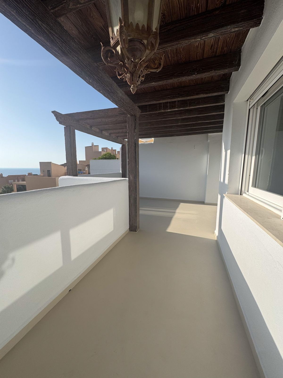 The views from the terrace are truly spectacular, offering panoramic views of the sea and mountains, as well as the communal swimming pool and interior courtyard. The covered terrace provides a sheltered space to enjoy the outdoors all year round.