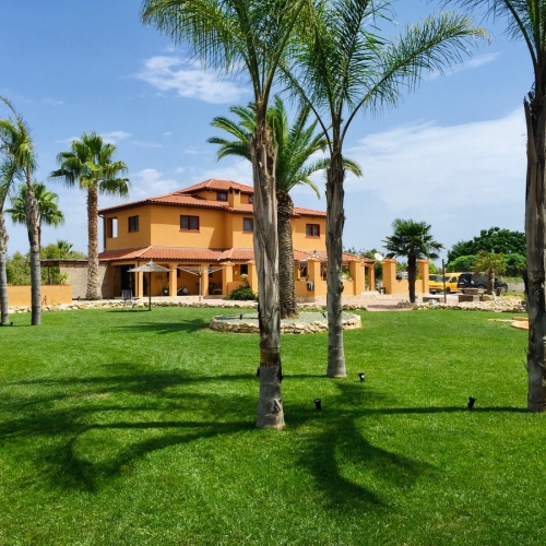Built to the highest standard by renowned constructors Tip Top, the property reflects timeless Mediterranean style with vaulted ceilings, a dramatic double-height entrance hall, and grand wooden doors that lead into expansive living areas. Every detail has been carefully designed to combine comfort with architectural beauty.