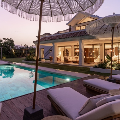 Seize the chance to own a brand-new frontline golf villa with direct views over El Campanario's fairways. This off-plan contemporary residence combines minimalist architecture with warm natural details and boho-tropical interiors, designed for effortless Mediterranean living.