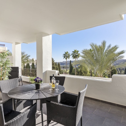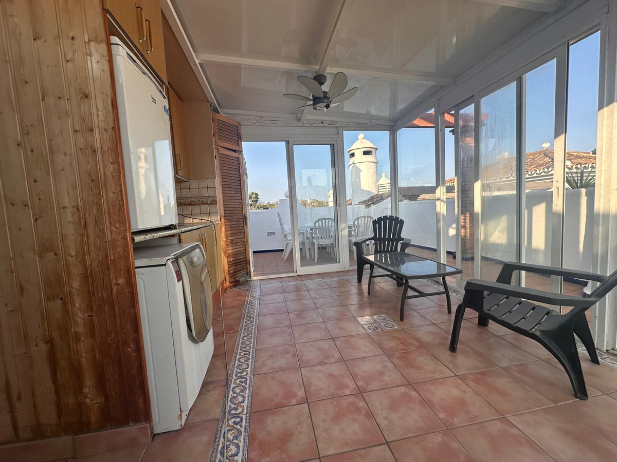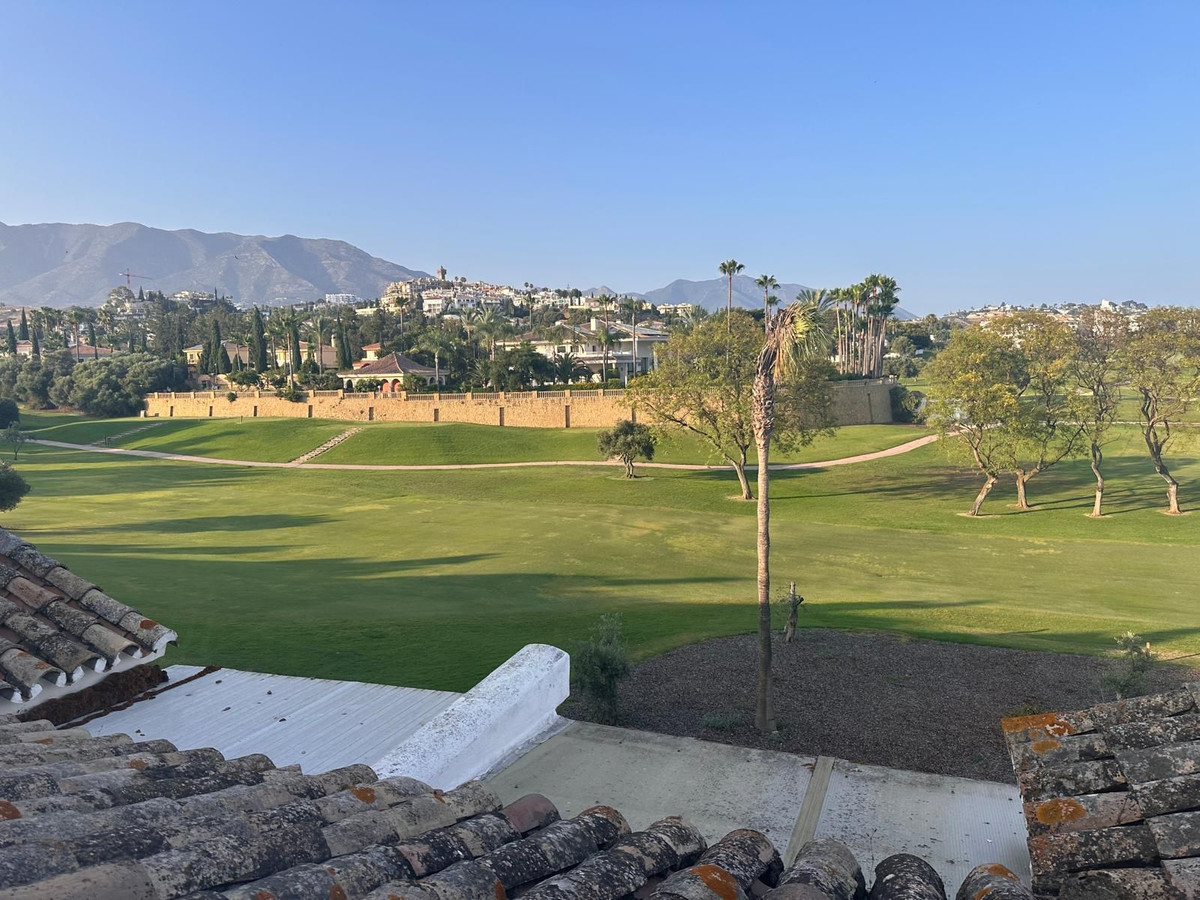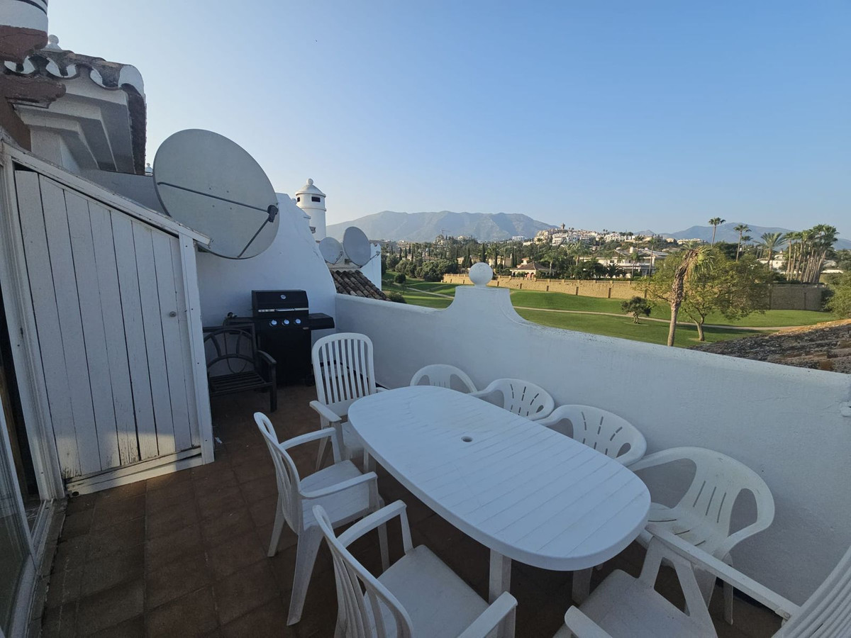 Discover this spectacular frontline golf penthouse. With a completely renovated and tastefully decorated design, this home features two spacious bedrooms and two full bathrooms, perfect for enjoying comfort and style. The kitchen is open to the living room, offering cozy and bright spaces. It also has a fireplace. The living room opens onto a charming terrace where you can relax while enjoying the stunning views of the golf course.