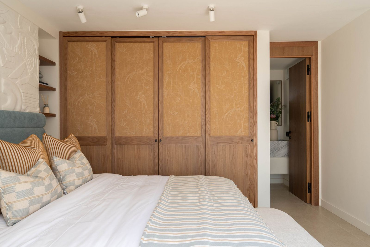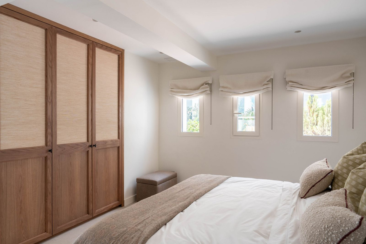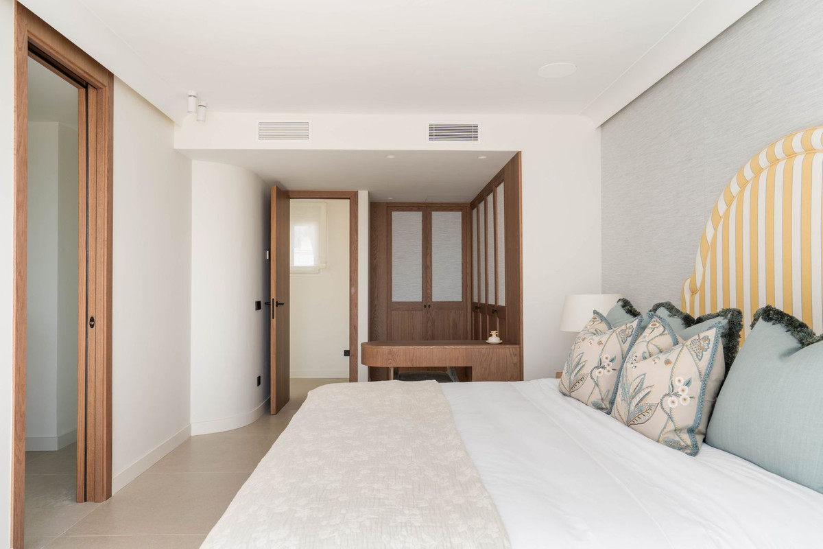 Upstairs you'll find two more bedroom suites, both with panoramic sea views. The principal suite offers a Mediterranean ambiance with en suite bathroom and a chic walk-in closet, while the second suite opens onto a spacious terrace with lounge and wet bar – the perfect setting to enjoy Marbella's sunsets. With direct access from the community to the beachfront promenade, you can stroll to PuenteRomano, Marbella Club, or even Puerto Banús. Fine dining, beach clubs, and world-classamenities are all within walking distance.