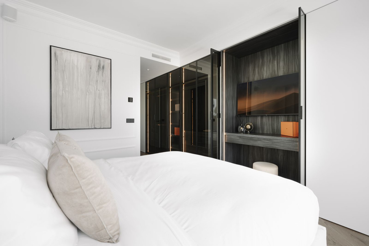 Det stora sovrummet är överdådigt och elegant med eget badrum, vackert detaljerade garderober och garderober samt tillgång till terrassen.