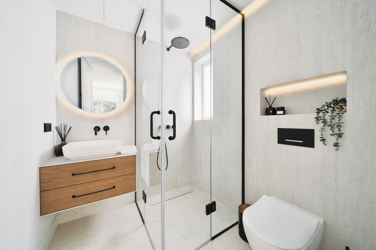 Det finns två gästrum, alla med eget badrum, samt en gästtoalett gömd bakom en panelvägg.