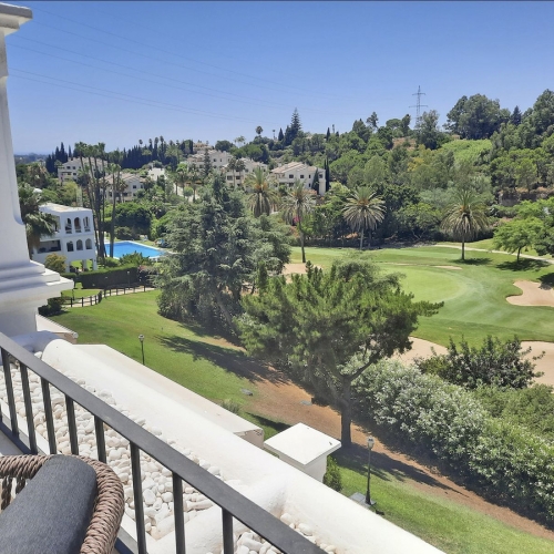Denna fantastiska lägenhet på översta våningen, belägen i den prestigefyllda La Quinta Golf Resort, erbjuder en elegant och sofistikerad interiör med hisnande panoramautsikt.