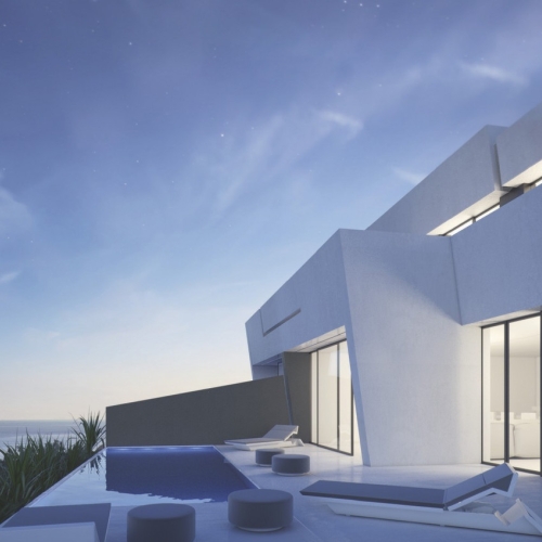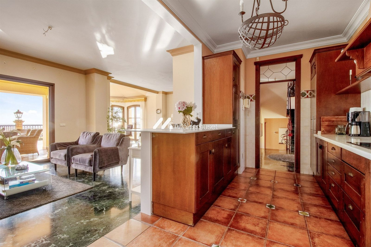 Villans huvudsakliga våning imponerar med ett rymligt vardagsrum och ett kök i öppen planlösning, där stora fönster släpper in det naturliga ljuset och ramar in den magnifika havsutsikten. Härifrån finns också direkt tillgång till en av flera terrasser, som bjuder på en idyllisk miljö för avkoppling eller middagar under stjärnorna.