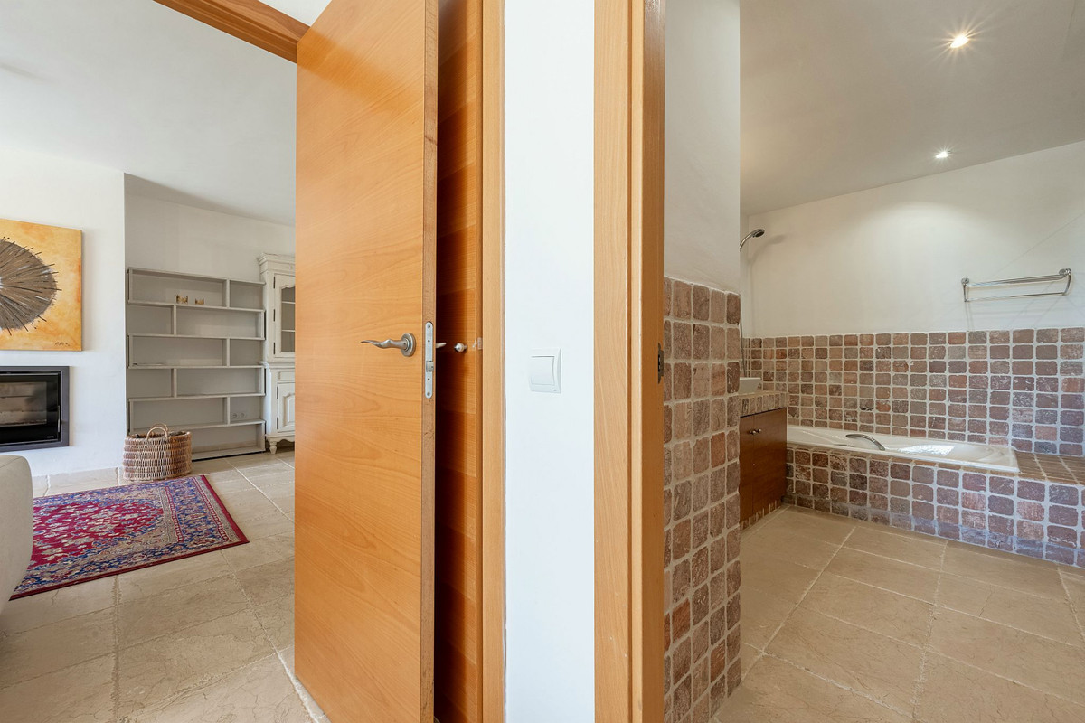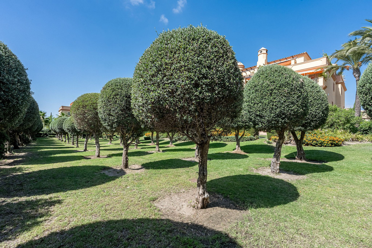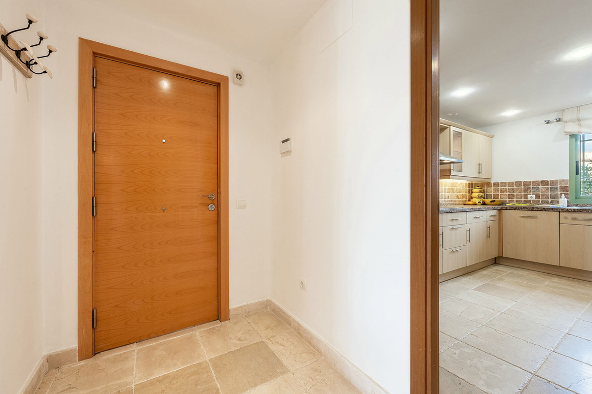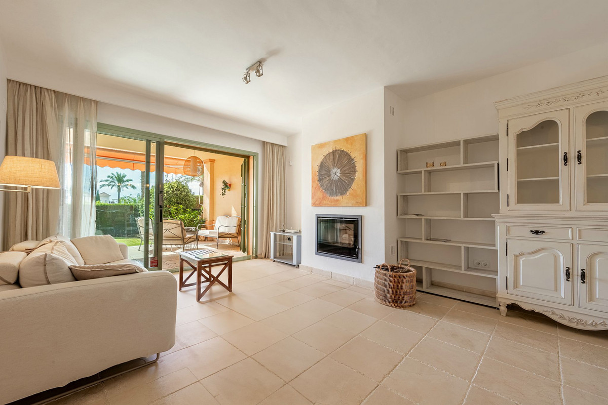 Outside, the cozy covered terrace is ideal to enjoy the Mediterranean climate year-round. From the private garden, you can access one of the three community pools directly — a feature that adds both convenience and exclusivity.