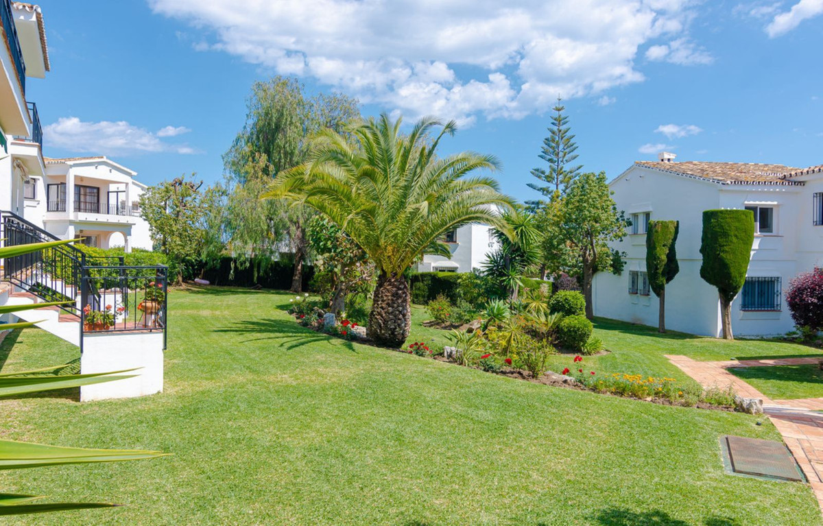 Exquisite One Level Garden Apartment with a high interior specification offering open tropical views situated El Paraiso Alto Benahavis, enviably positioned within a prestigious Andalucian community consistently chosen by industry professionals as a top recommended golf and residential choice, designed within outstanding tropical gardens offering direct access onto the famous El Paraiso 18 hole golf course green. The property benefits from corner positioning within immaculately maintained flat tropical palm and floral gardens offering open tropical views with distant golf and sea views from the garden.