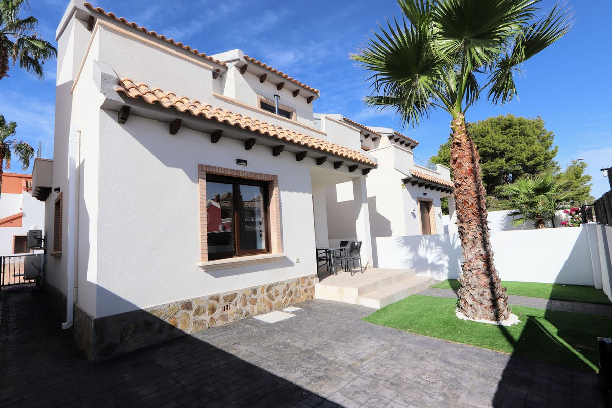 This property features 3 bedrooms, 2 bathrooms, a spacious living/dining area, and a fully fitted kitchen. It also boasts a private sunny terrace, a garden, and off-road parking. For your comfort, the villa includes air conditioning throughout and electric blinds, and it is being sold furnished. One of the great benefits of this complex is the communal swimming pool, which can be accessed directly from the back of the property.