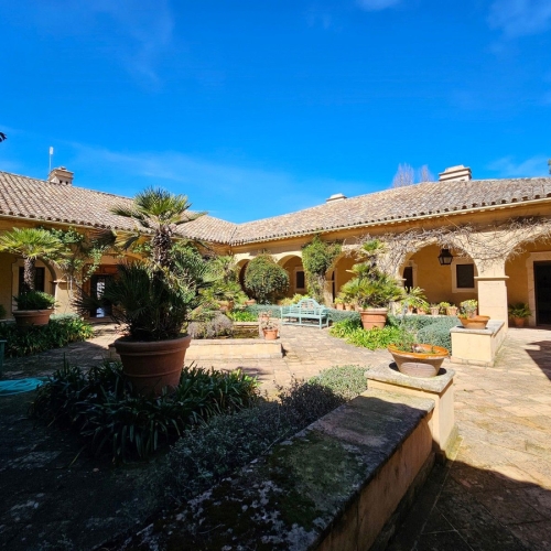 Outside, we find a productive olive grove with the possibility of producing our own oil, a woodland area with scrub oaks, cork oaks, and holm oaks, as well as several areas designated for animals: stables, a kennel, and a fenced area for semi-free roaming.
