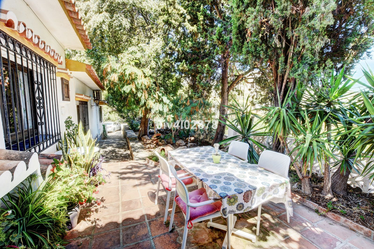 Nestled in an exceptional location that perfectly marries tranquil countryside living with the convenience of village life, this charming Andalusian-style villa is a true gem. Situated on a raised point with a serene, elevated position, the property offers stunning sea views towards Fuengirola, with the potential for panoramic views from various vantage points. The lush, mature trees and beautifully maintained bushes envelop the home, providing both privacy and a timeless character that is truly captivating.