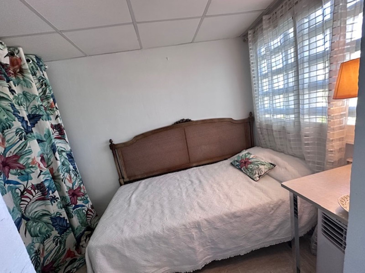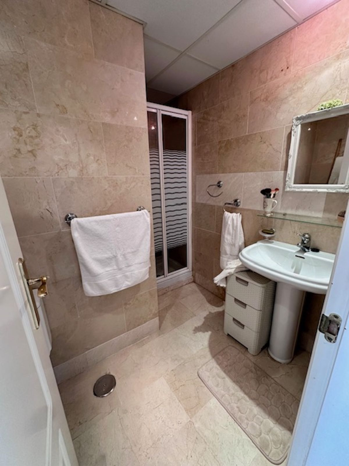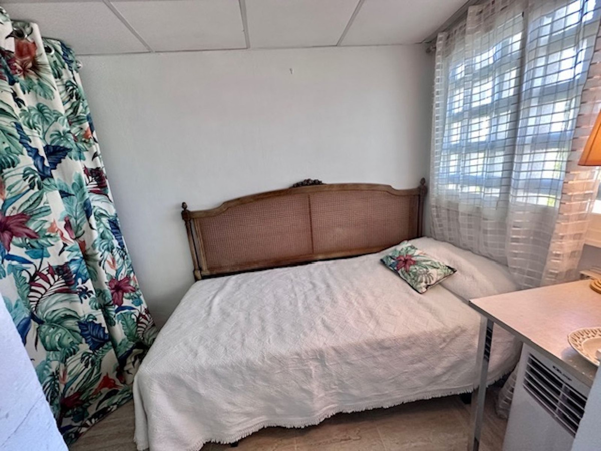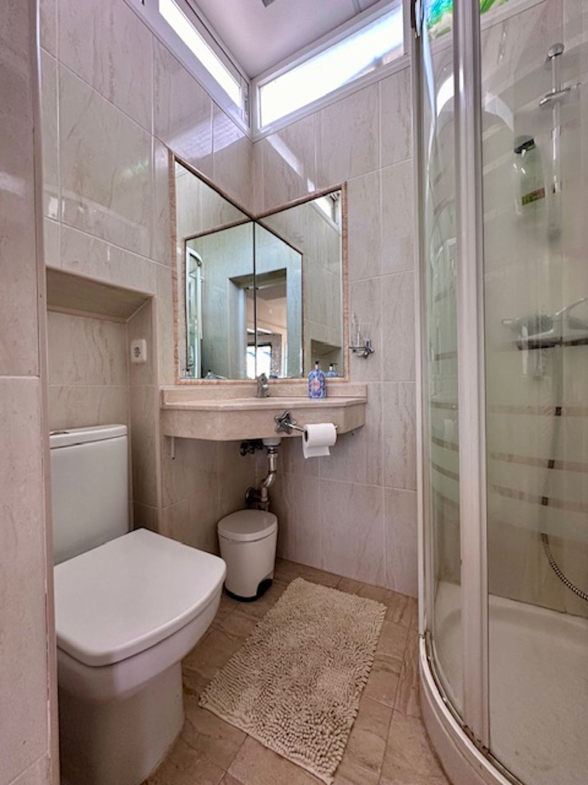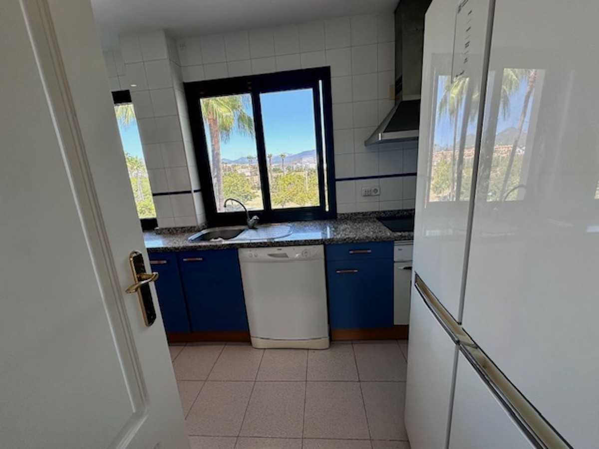 Spacious entrance hall, with a kitchen to the right overlooking the complex and exceptionally bright, with windows and natural light. The laundry area off the kitchen has been converted into a bedroom with a 90-cm bed. This makes it an option for an additional guest!