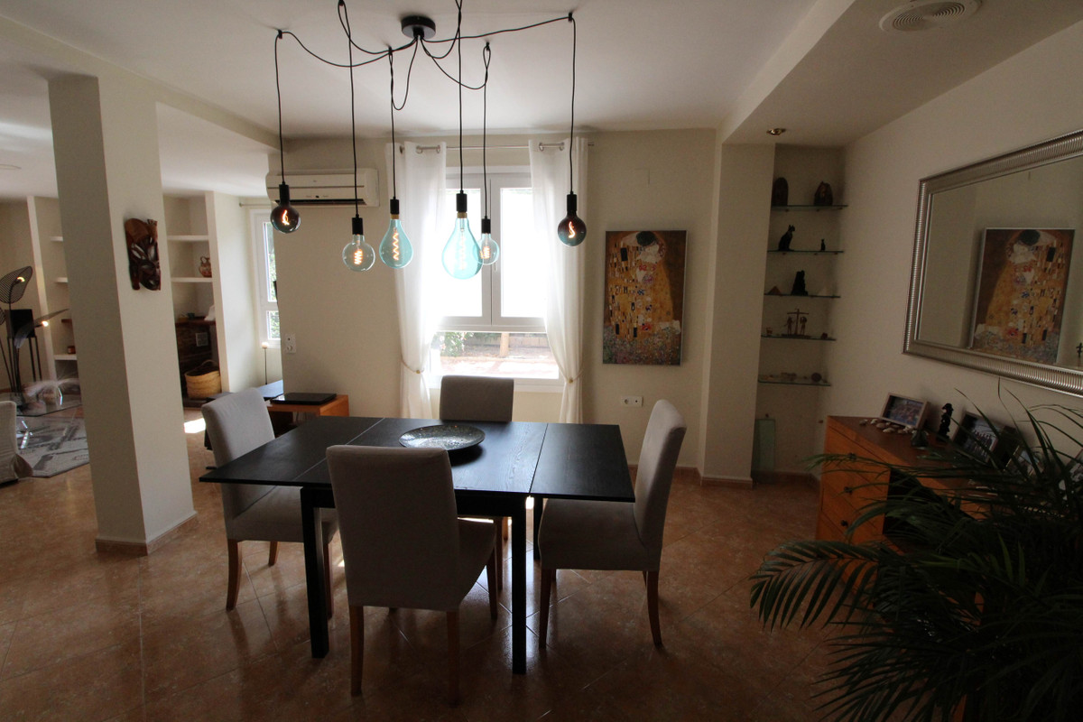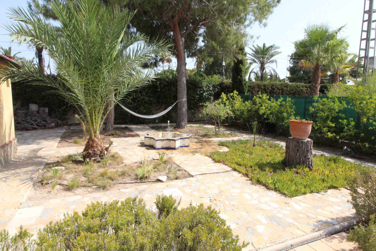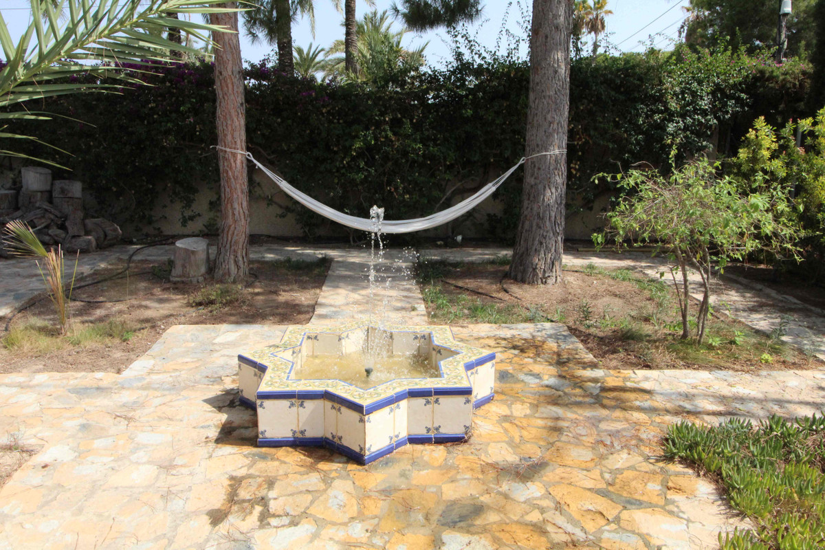 This property stands out for its large and well cared for garden with a number of fruit trees including oranges, lemons, figs, and pomegranates, private pool, 3 outbuildings including one next to the pool with a bathroom, car port, large terrace with BBQ and seating/dining area, ornate Moorish style fountain, seating areas, hammock and different varieties of palm trees and plants.