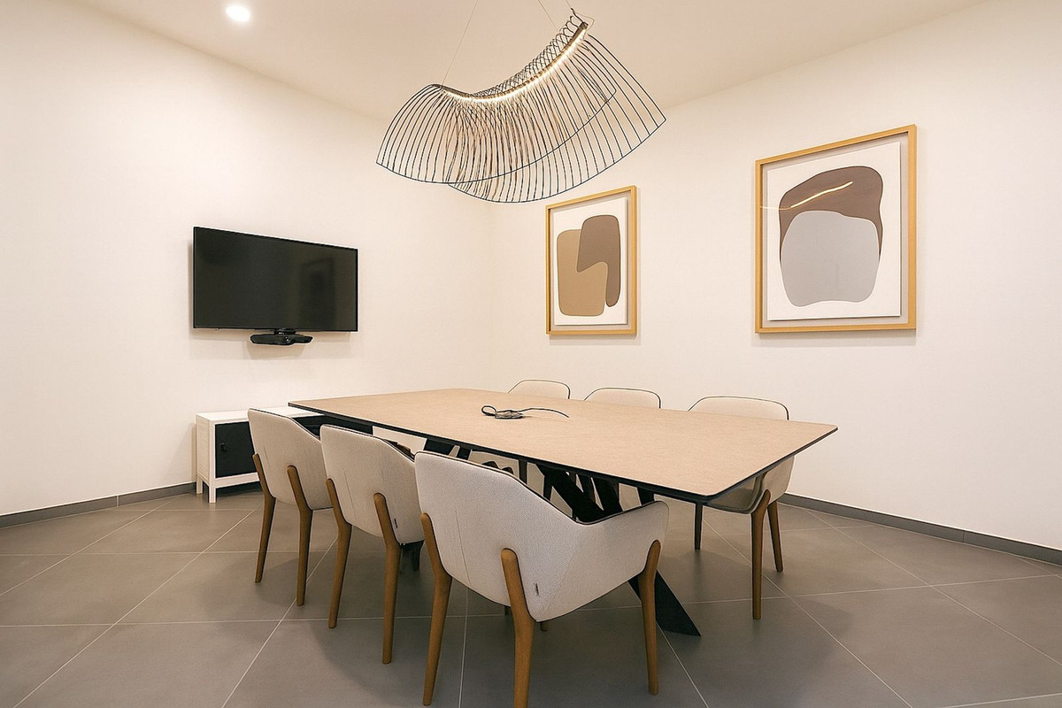 It has hot/cold air conditioning controlled by the best Air Zone home automation control system, underfloor heating throughout the interior area, LED lighting, designer kitchen with NEFF appliances, dressing areas in the bedrooms and large porcelain floors.