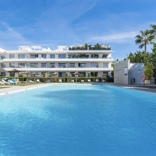 The residential area is gated. The community has communal areas with a swimming pool and amazing gardens. It is located within walking distance of the beach, restaurants and shops. A short drive will bring you to an international school, public schools, Puerto Banus, Marbella, Benahavis, San Pedro de Alcántara or Estepona.