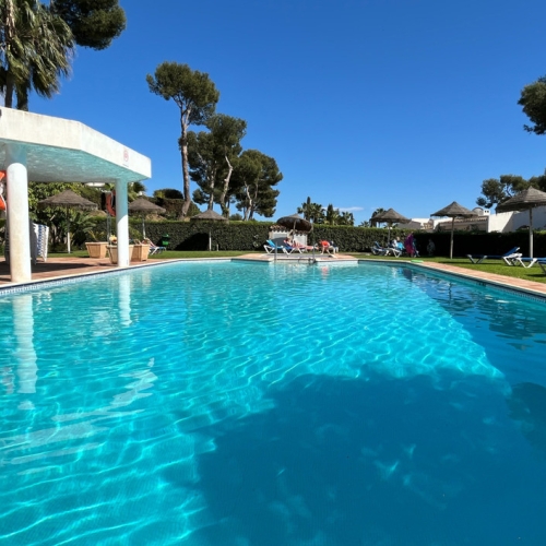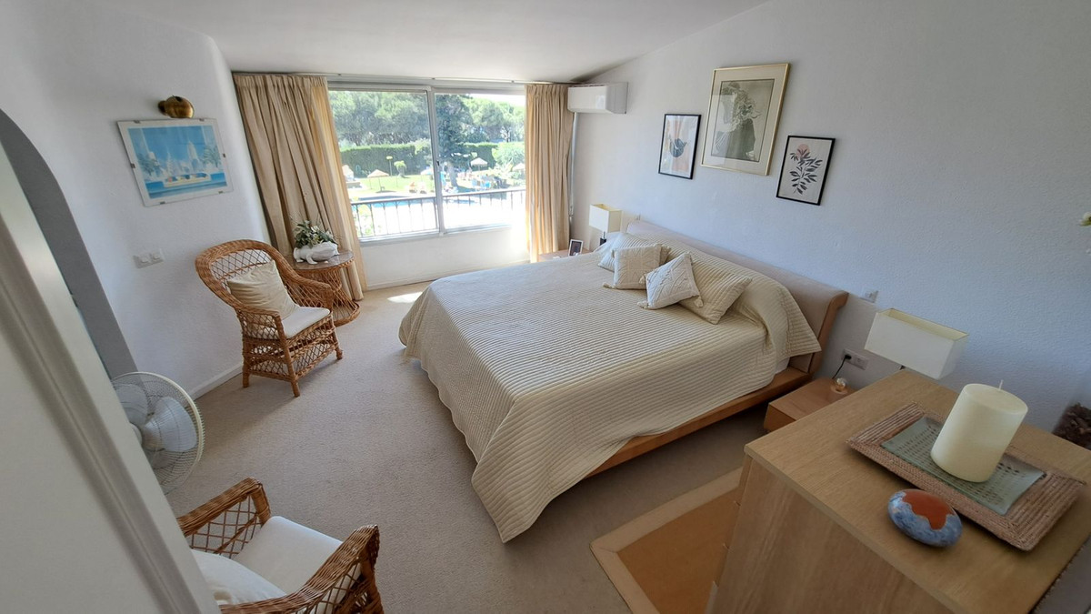 We are delighted to offer this lovely duplex town house in the very convenient location of Miraflores Resort. The property comprises:- Spacious lounge with open fireplace and dining area leading onto large terrace, fully fitted kitchen, master bedroom with en-suite bathroom and dressing room, two further bedrooms, family shower room and cloakroom. Sunny orientation. Lovely communal swimming pool with a bar and restaurant and sub-tropical gardens. Further features includes: additional patio, 24 hours security. Being sold fully furnished. Walking distances to the beach and bus stop.