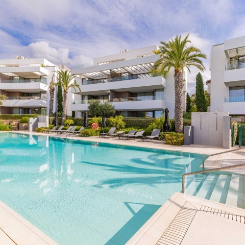Lyxig lägenhet på bottenvåningen i Capanes del Golf – Resortliv vid El Higueral golfbana nära Marbella, Benahavis och Estepona.