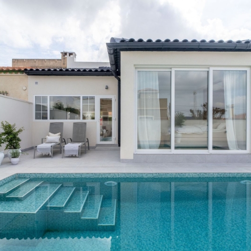 We are happy to present to you this Lovely Semi Detached Villa with Sea Views and direct access to the beach Playa de Roca in Torrevieja. The property consists of 3 bedrooms, 2 bathrooms, living/dining area and a fully fitted kitchen. The property benefits from private terrace, air conditioning and a roof solarium with sea views, outside kitchen and shower.