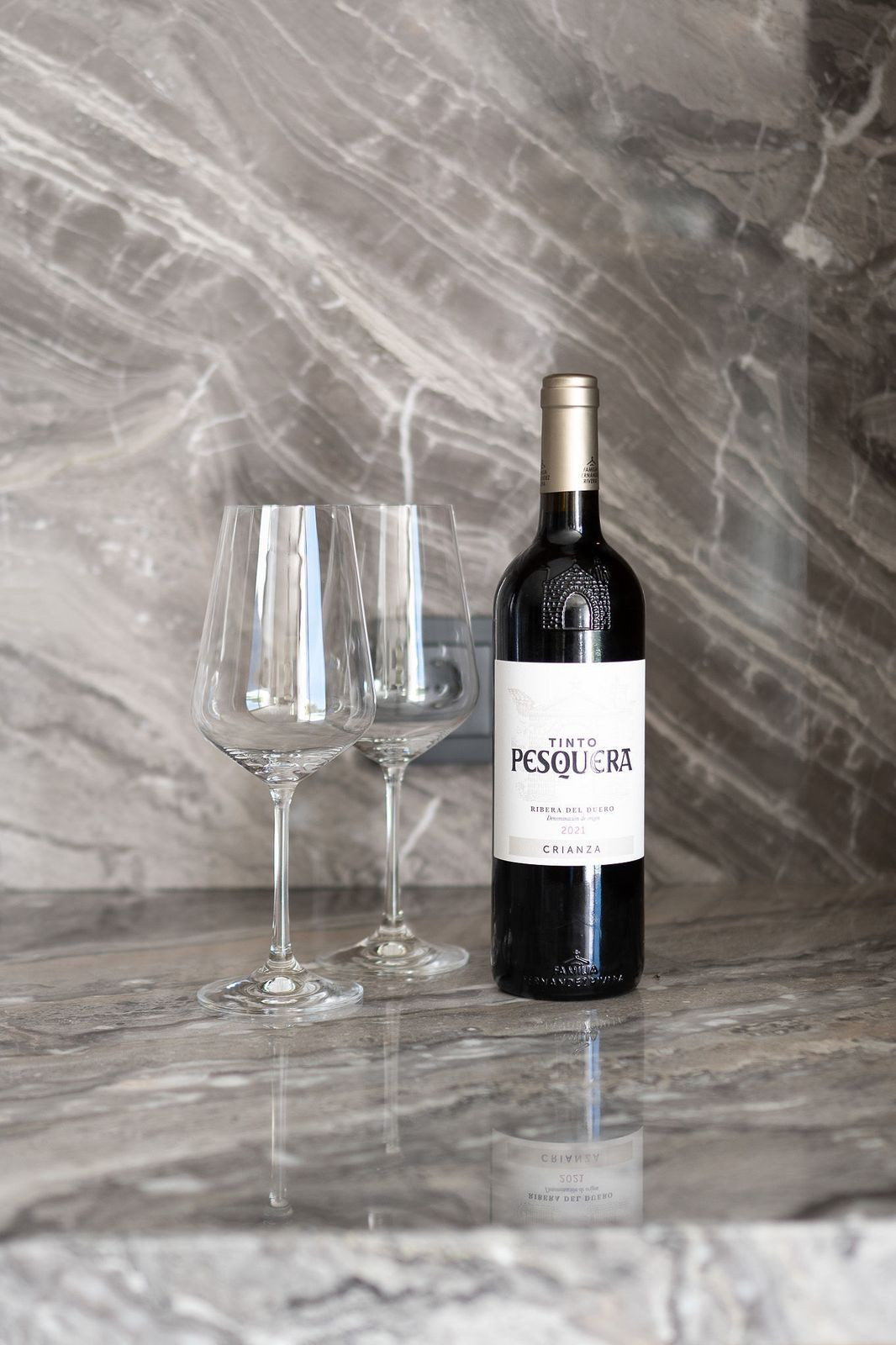 Inside, enjoy a bright open-plan layout with high ceilings, floor-to-ceiling windows, a cozy fireplace, and luxurious wood floors. The sleek nogal kitchen features Miele appliances and marble countertops—perfect for the modern chef.