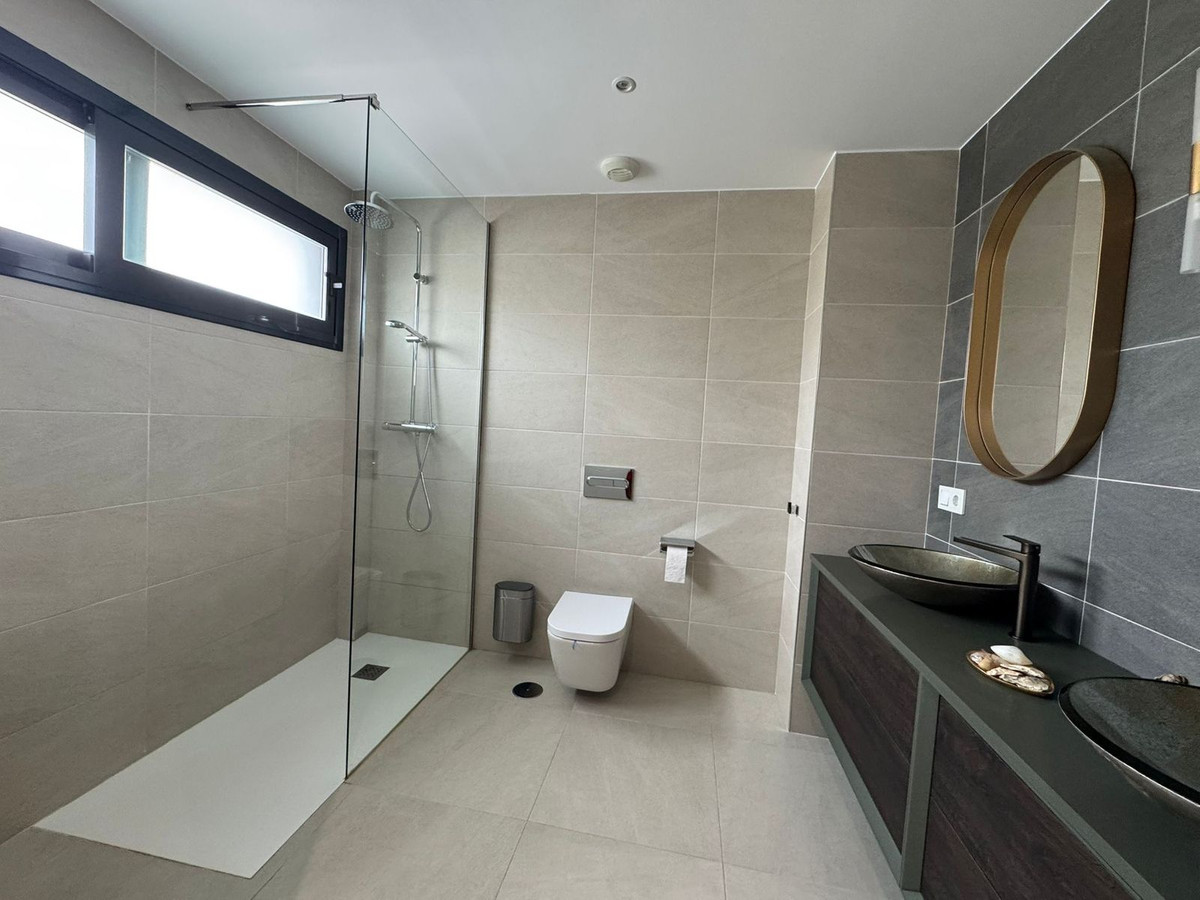 This exceptional modern villa, built in 2021, offers 3 bedrooms and 3 bathrooms on a generous 600 m² private plot. Ideally located within walking distance of the beach and everyday amenities, the home combines sleek design with premium finishes and a long list of luxury extras added by the current owner.