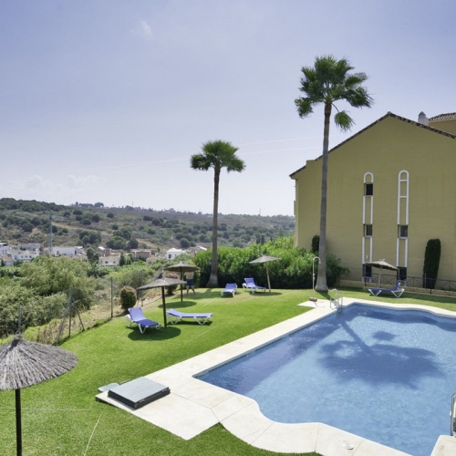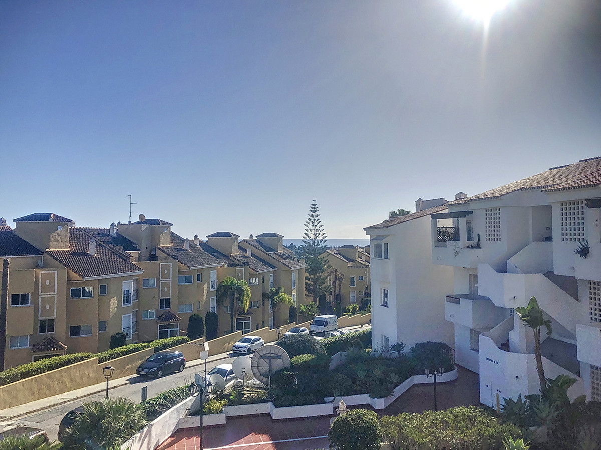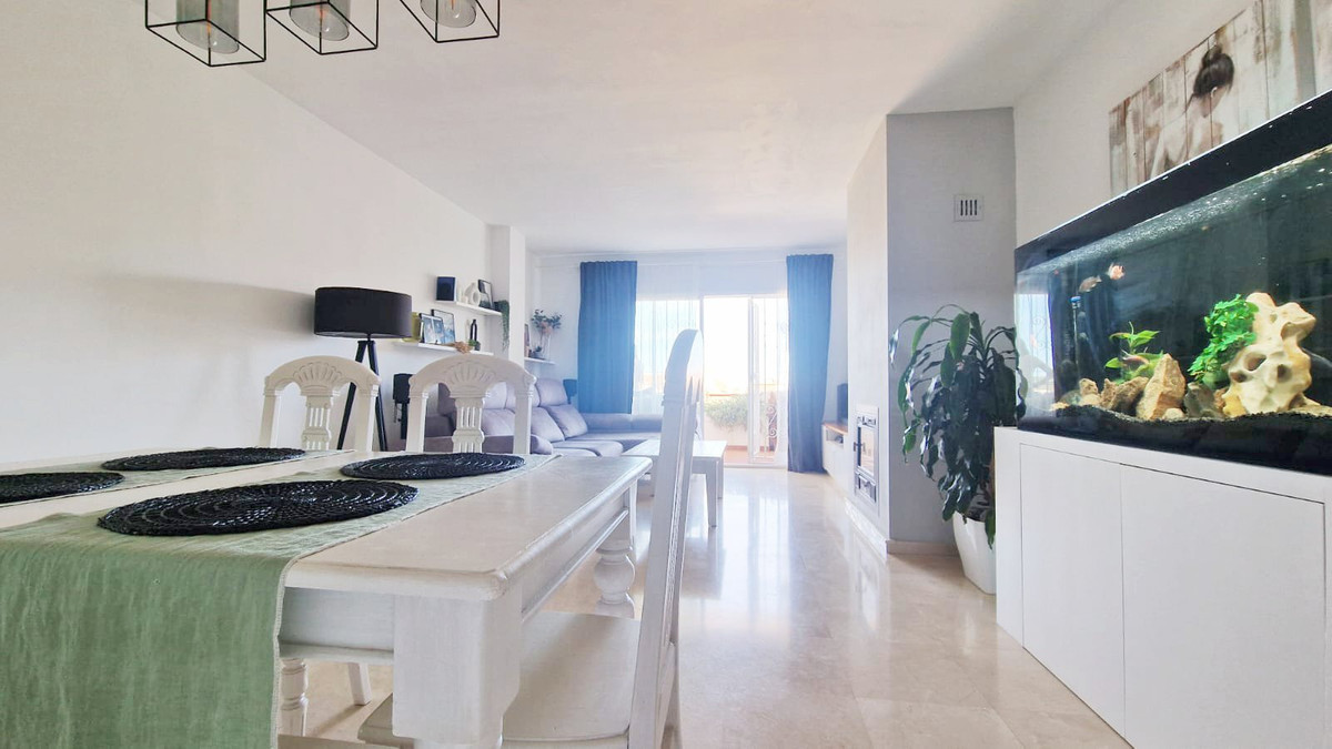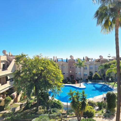 The apartment is part of a gated community with a swimming pool and landscaped communal gardens, perfect for enjoying the Mediterranean climate. Its proximity to schools, restaurants, and Estepona town center makes it an attractive option for both families and professionals.