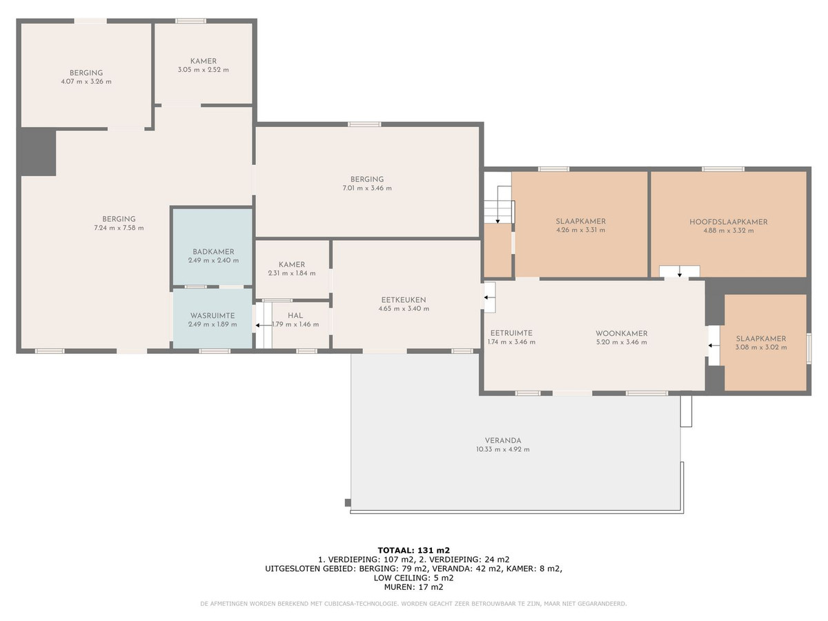 • Main house: Traditional home with kitchen, cozy living room, 5 bedrooms and bathroom (131m²)