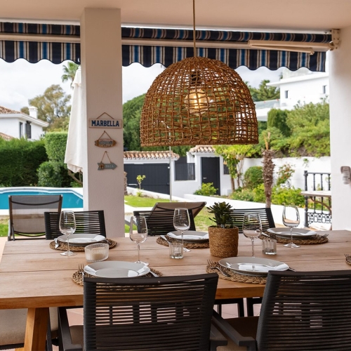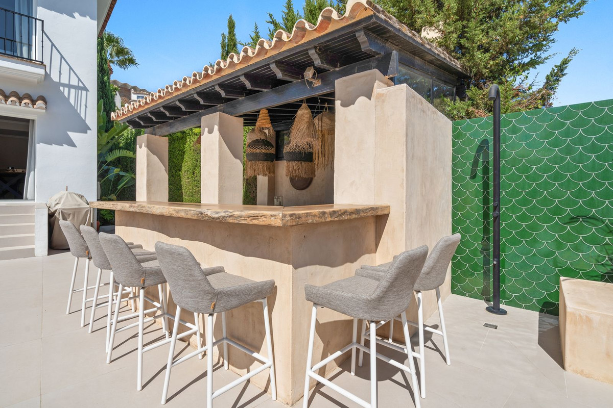 Tucked away in a quiet cul-de-sac, this charming Andalusian-style villa offers privacy, stunning views of La Concha, and one of the best locations in Marbella. Just a short stroll from Puerto Banús, Centro Plaza and the beach, the property combines traditional character with a unique "private beach club" atmosphere.