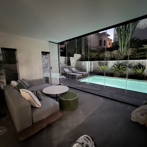 Set on a generous 721 m² plot with 222 m² built, the villa features a spacious living room with fireplace, a fully fitted kitchen, 5 bedrooms, 3 bathrooms, and a guest toilet. Its outdoor spaces are designed for entertaining and relaxation, with multiple terraces, chill-out areas and an open-air gym, all surrounded by a stylishly renovated exterior.