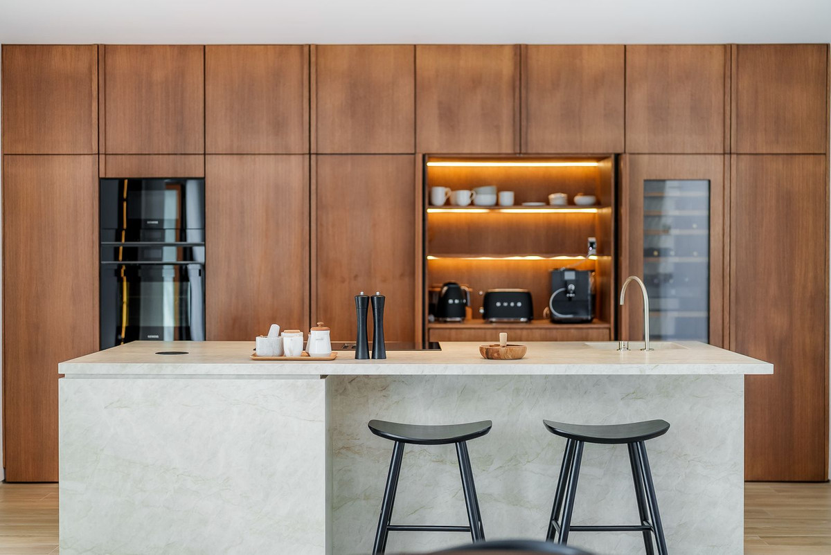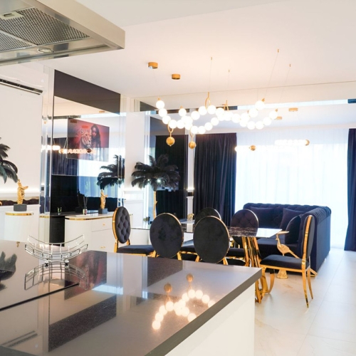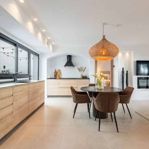 On the first floor you will find an open space living room together with custom made bespoke kitchen. Guest bedroom with the direct access to the garden and the terrace as well as guest bathroom. On the second floor there are 3 bedrooms and all with en suite bathrooms where master bedroom also has its own walk-in closet and private terrace overlooking the pool area. As an added value this apartment also has a laundry room that leads directly to the garage.