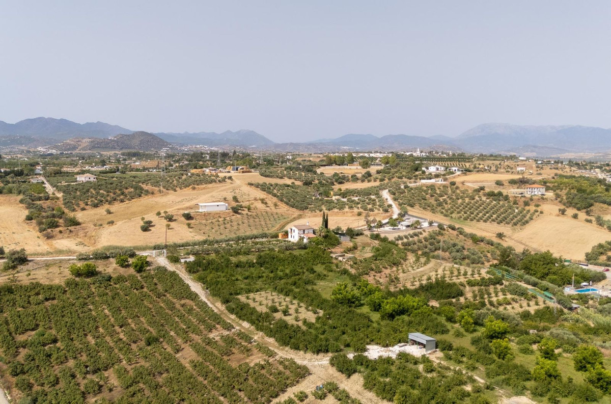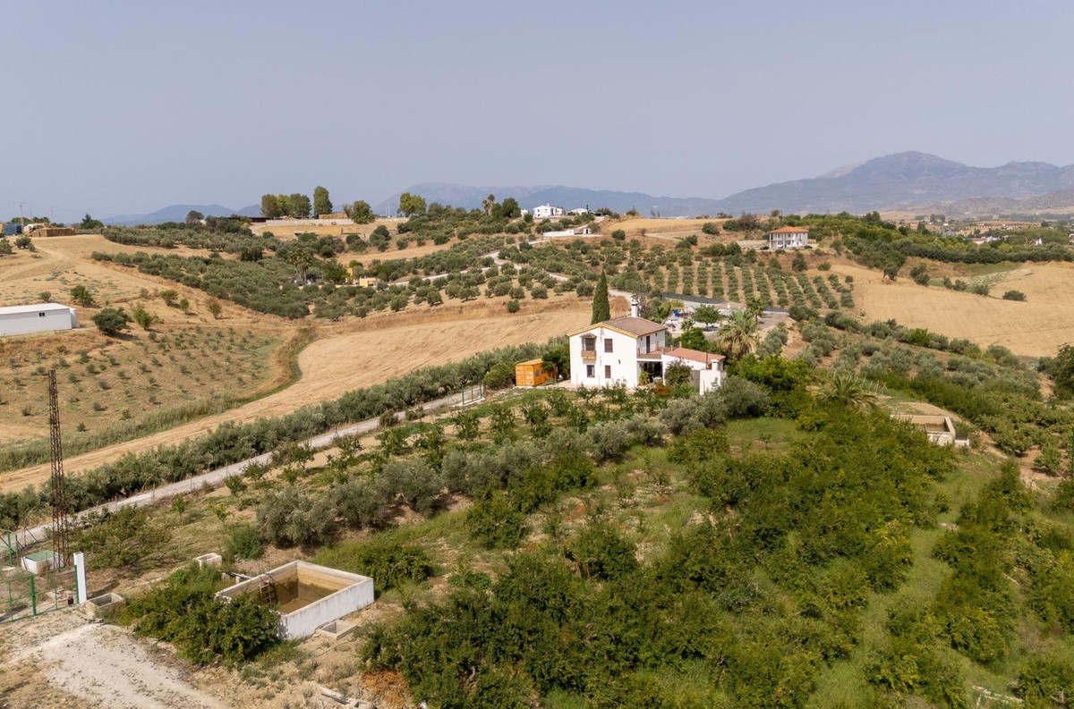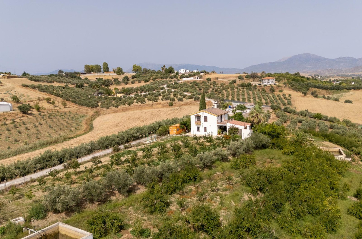 Wonderful finca with almost 50,000 m2 of land, totally fenced, with 5 different entrances, water from its own well plus irrigation water from the canal such us two algibes/ water deposits. T he land is divided into several terraces and planted mainly with pear and pomegranate trees, as well as olive, walnut, lemon, and orange trees. Within the farm, a two-story house was built in 2005 which has three bedrooms, two bathrooms, a living room with a fireplace, and a fitted kitchen. A spacious covered porch entrance and a separate 30 m2 storage room. An ideal property for lovers of the countryside and tranquility, 25 minutes from Malaga and 10 minutes from the town of Cártama.