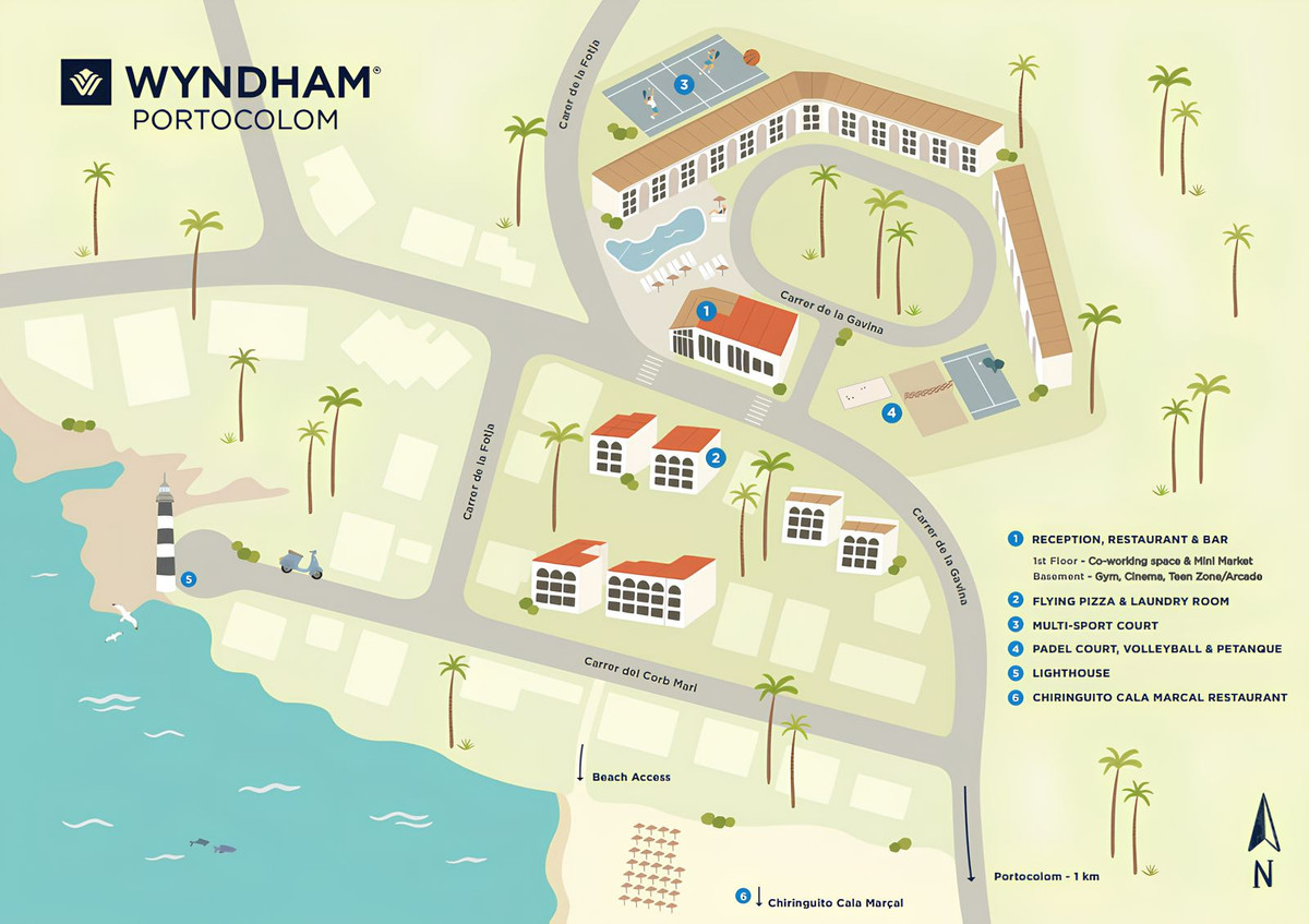 Wyndham Portocolom – A new standard of living where the warmth of home meets high-quality hotel services. Just 250 meters from the golden sands of Cala Marçal, Wyndham Portocolom enjoys an enviable location in Portocolom Bay. With Cala d'Or just a short drive away, this setting combines convenience with stunning natural beauty.