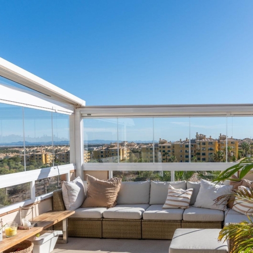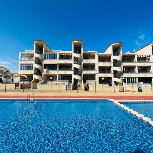 The apartment is located in a residential complex with a communal pool, fully furnished and is equipped with air conditioning C/W in all rooms to ensure maxim um comfort throughout the year. Just a short walk from supermarkets ,restaurants, cafes, pharmacy, beach bars, water sports and all kinds of services, it is very close to Zenia Boulevard, the largest shopping centre in the province of Alicante with over 150 shops. Just a 10-minute drive takes you to 4 internationally renowned golf courses Villamartín, Las Ramblas, Campoamor and Las Colinas. Aquamarina - Dehesa de Campoamor Beach is one of the most sought-after areas of Orihuela Costa, perfect for permanent residence or investment. Don't miss the opportunity to live the dream in this magnificent apartment by the sea with exceptional amenities on your doorstep! The airports of Alicante and Murcia (Corvera) are only 45 min drive away. This highly popular area with close proximity to ALL amenities makes this property perfect for a holiday home, permanent residence or a great rental opportunity, so be quick as it will not be on the market for long. MUST BE SEEN !