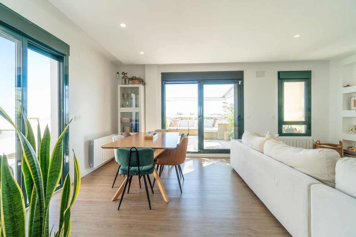 This South East Facing, Three Bedroom, Penthouse Apartment in Campoamor Golf is located on the borders of Villamartin, just a short stroll to a main chain supermarket and a bar/restaurant, with the popular La Fuente commercial centre 7 minutes away. The golf course is only a 2-minute drive, whilst the stunning Orihuela Costa beaches and La Zenia Boulevard shopping centre are reachable in just 7 minutes. This reformed, third-floor penthouse has been finished to an exceptionally high standard and is stunningly presented throughout. Offering 100m² of internal space, the bright living area boasts two sets of double sliding glazed doors — one leading to a spectacular 47m² terrace complete with glass curtains, a retractable sun blind, and outstanding views across to the sea, forest area, a zone where you can relax or entertain and take in the evening sunsets. The modern, open-plan kitchen comes with a breakfast bar and utility area. There are three double bedrooms with built-in wardrobes, the master benefits from a walk-in wardrobe and an exquisite en suite shower room, while bedroom three also enjoys direct access to the terrace. A stylish cloakroom completes the accommodation. The block benefits from lift access, and residents have use of a beautiful communal pool area. Extras include air conditioning, central heating, and a built-in BBQ on the terrace — ideal for entertaining with views to match. A unique and truly impressive penthouse in a sought-after golf and coastal location on the Costa Blanca South.\n
