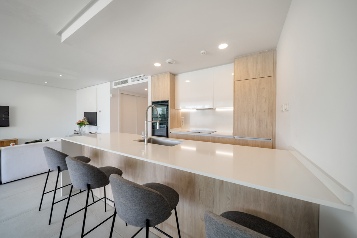 Designed for elevated everyday living, the residence opens into a sun-filled open-plan living area where floor-to-ceiling windows create a fluid connection to the outdoors. A spacious terrace, complete with a private pool and gas BBQ, is ideal for al fresco dining, entertaining, or simply soaking in the Mediterranean ambiance. Underfloor heating throughout ensures year-round comfort, while two underground garage spaces add everyday ease.