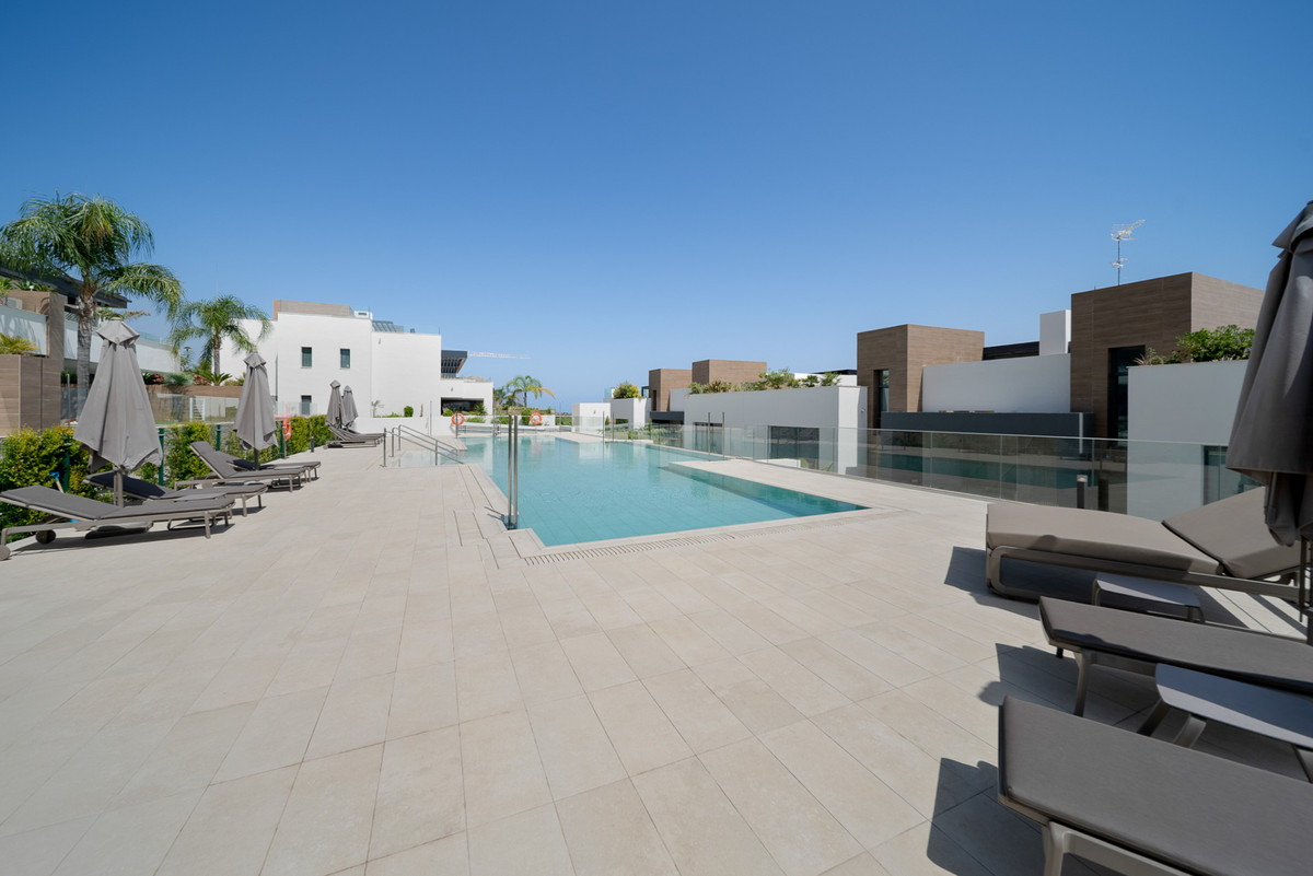Tucked within an exclusive gated community in Artola Alta, this sophisticated south-facing duplex blends modern luxury with the tranquility of coastal living. Just a short walk from Marbella's finest beaches, the home offers seamless access to nature and panoramic sea views from the community grounds.