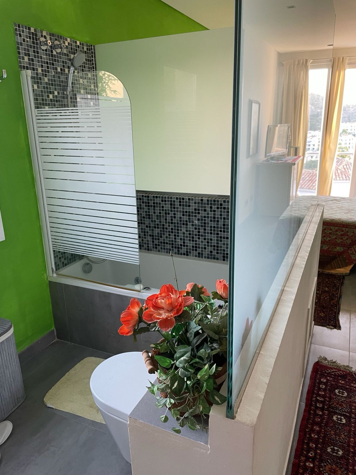 Outside, there are four private terraces, a well-established garden with automatic irrigation, and a private pool surrounded by greenery.