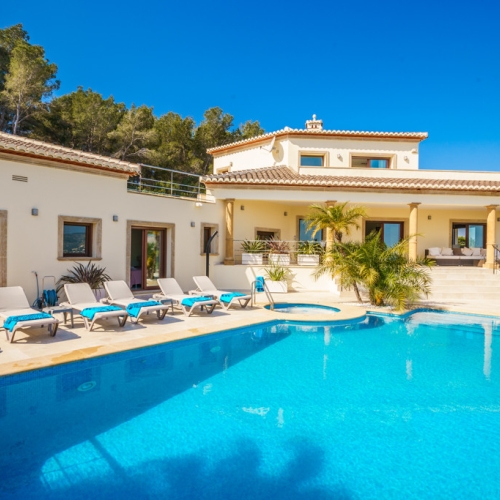 The villa is within walking distance of breathtaking viewpoints and only a 5-minute drive from several idyllic bays. The sandy beach of Jávea can be reached in 10 minutes, and the historic center in 15 minutes.
