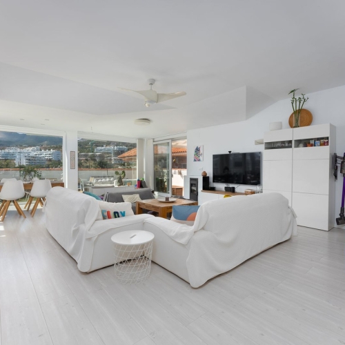 Located just 100 metres from the beach and close to Castillo Sohail Fuengirola this spacious three bedroom apartment offers the perfect blend of coastal living and urban convenience. Situated on the first floor of a well maintained building with concierge service, residents enjoy access to beautifully kept communal gardens and a communal pool a perfect place to relax if you don´t fancy the beach. This corner property benefits from lots of natural light throughout the day and opens on to a generous private terrace, where you can take in views of both the sea and the mountains. The property is in need of some modernisation, making it an excellent opportunity for buyers to create a home tailored to their taste. All of Fuengirola's shops, restaurants, and amenities are within easy walking distance, ensuring a vibrant lifestyle in one of the coast's most popular locations.