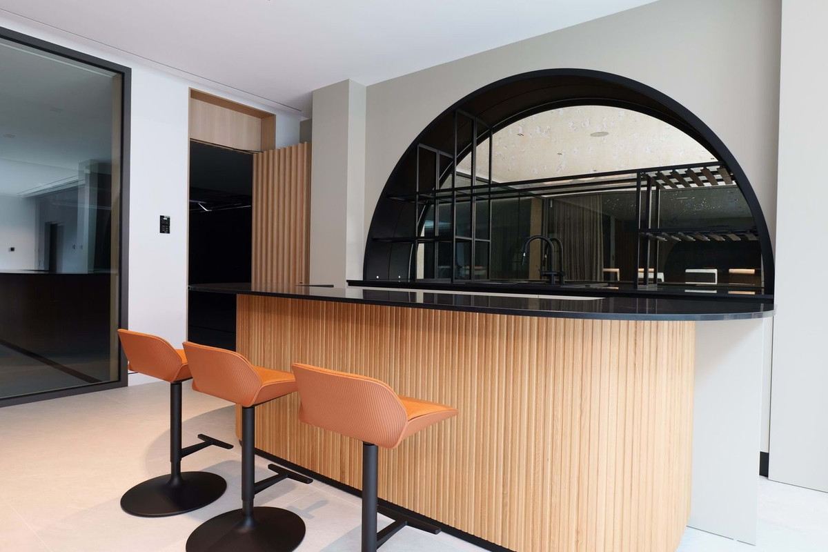 Seamless indoor-outdoor living defines the property. Landscaped gardens of 1,100 m² include two private pools with sea and garden views—perfect for relaxing or entertaining. The ground floor boasts an open-plan living and dining area, flowing into the terraces, alongside a fully equipped designer kitchen.