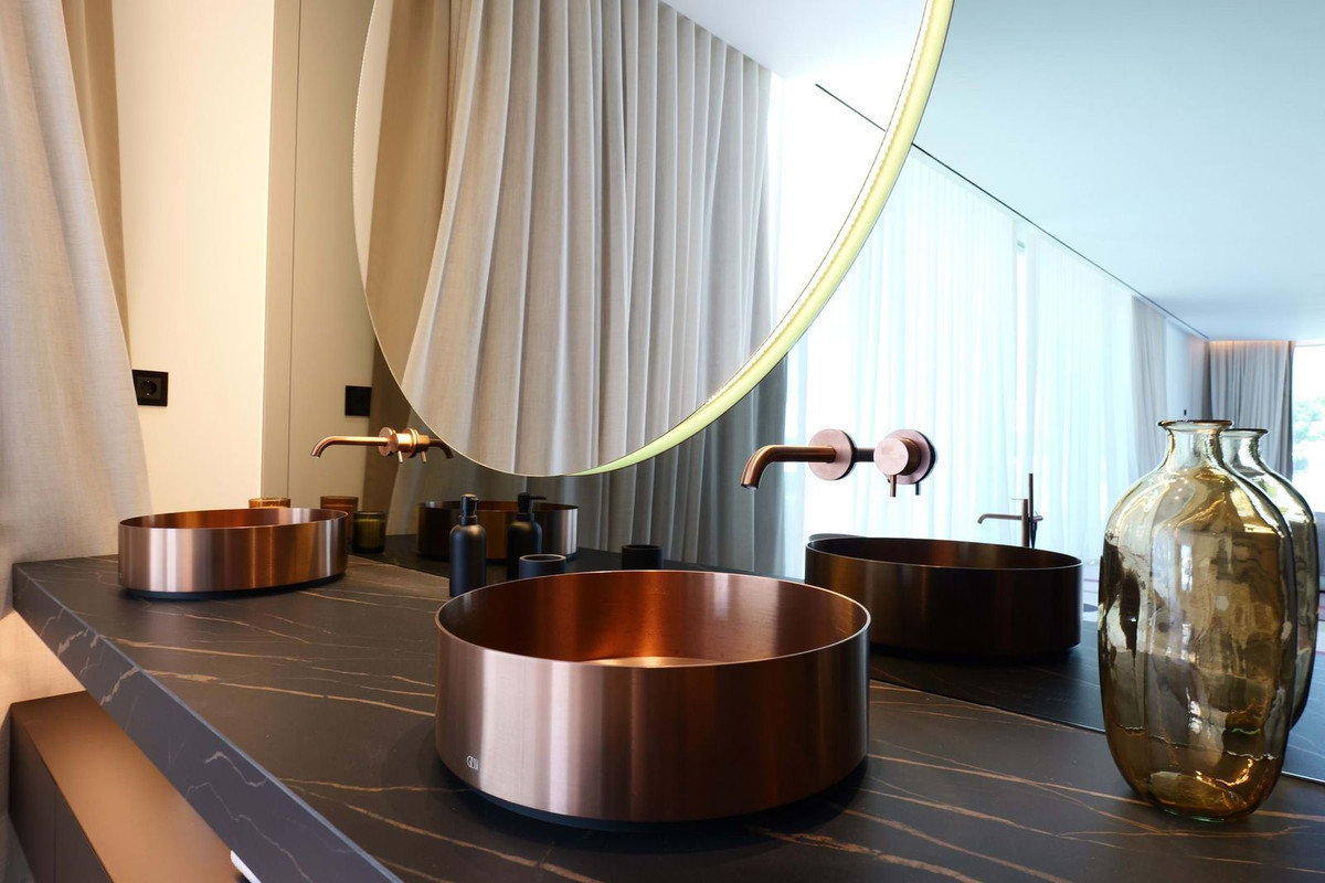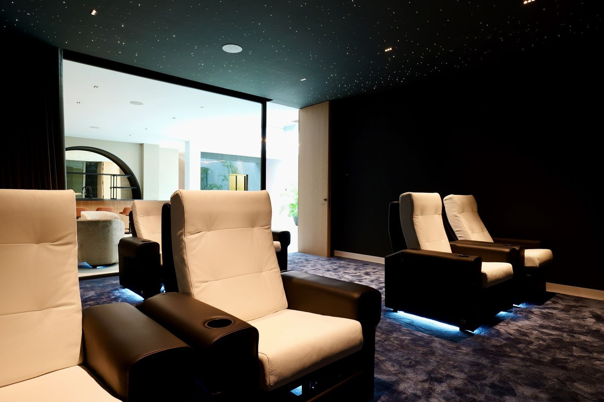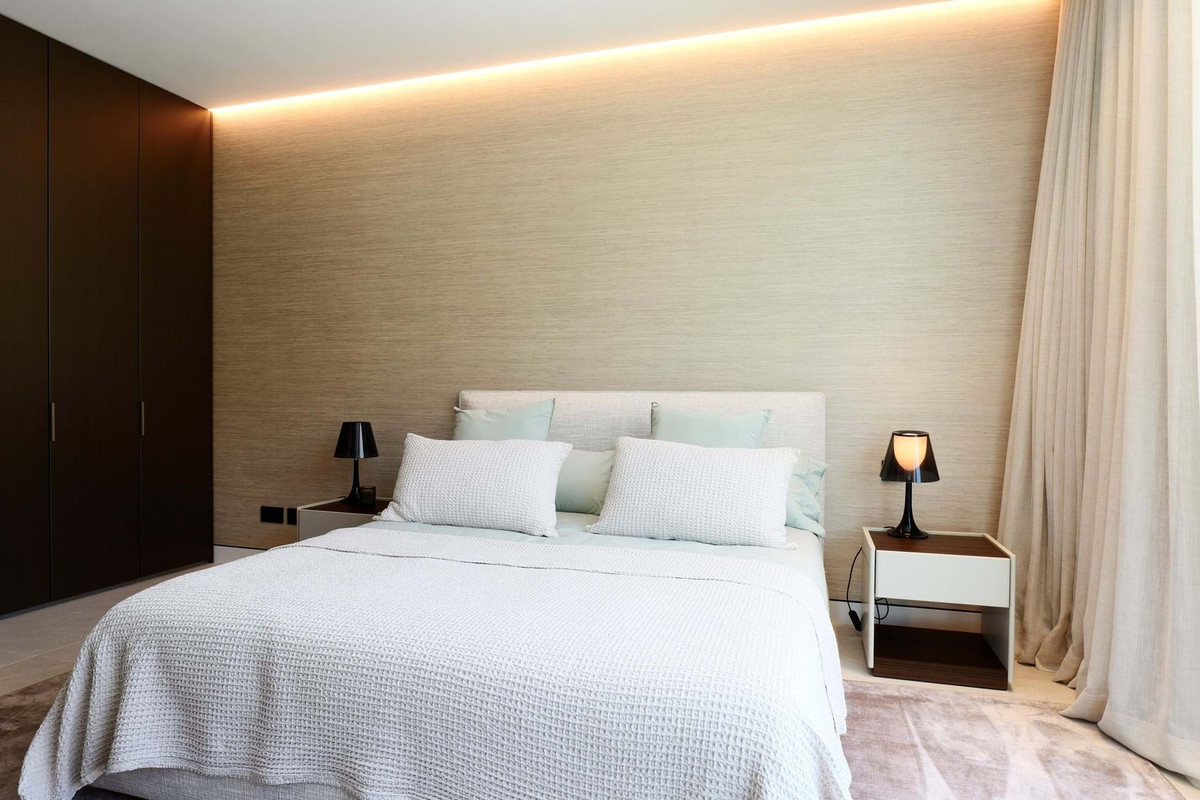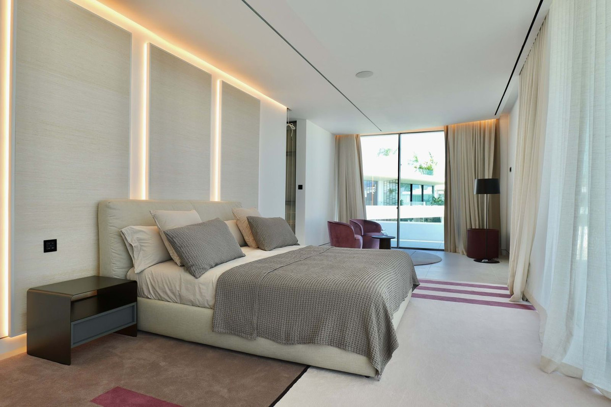 A highlight is the 100 m² rooftop solarium with pool, dining, and lounge areas, offering unbeatable Mediterranean vistas. Modern comforts include underfloor heating, smart home automation, Dolby Surround sound, and advanced security.