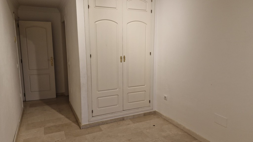 Apartment with sea views in Elviria next to Santa María Golf offering two bedrooms, two bathrooms, a very large kitchen, ample and bright living room and terrace. The apartment offers AC hot and cold, marble floors, underground parking space and storage room. Gated complex with three pool areas, gardens and within a short drive to the beach and all local amenities.