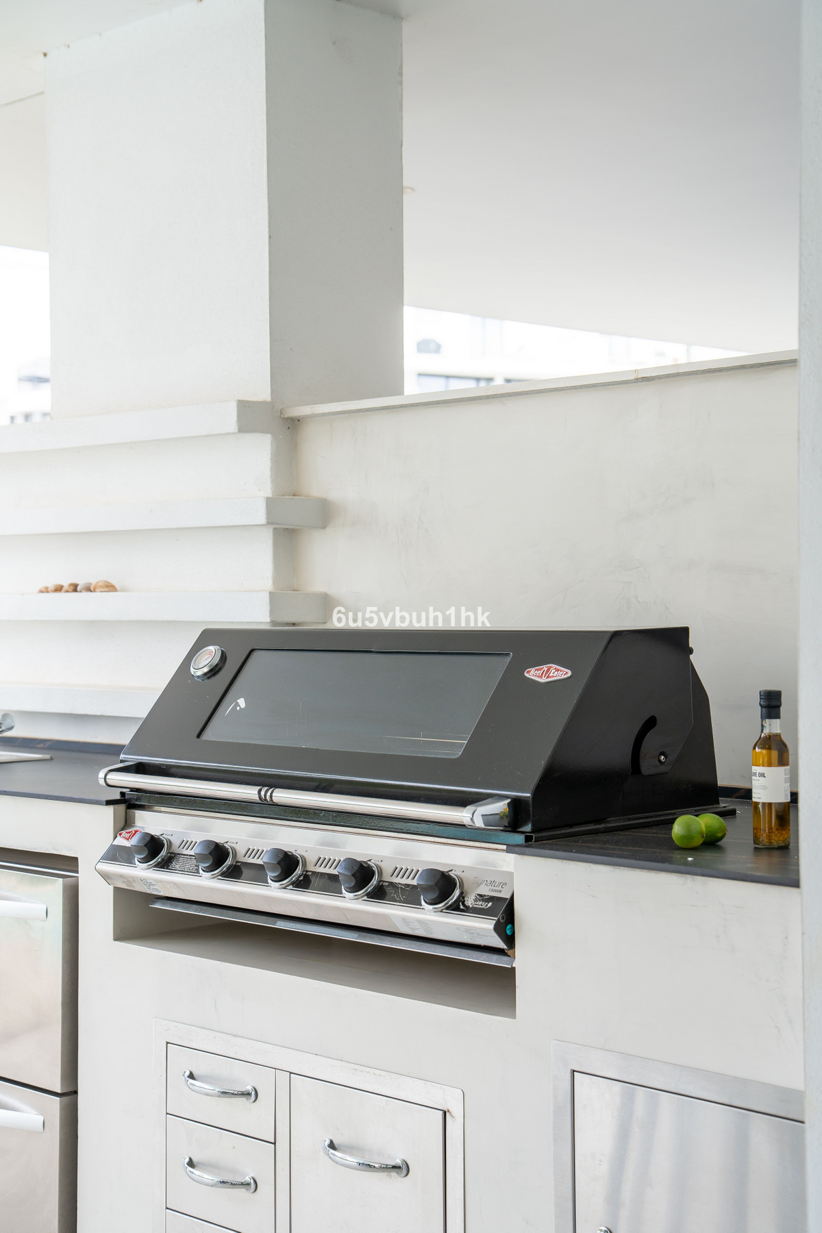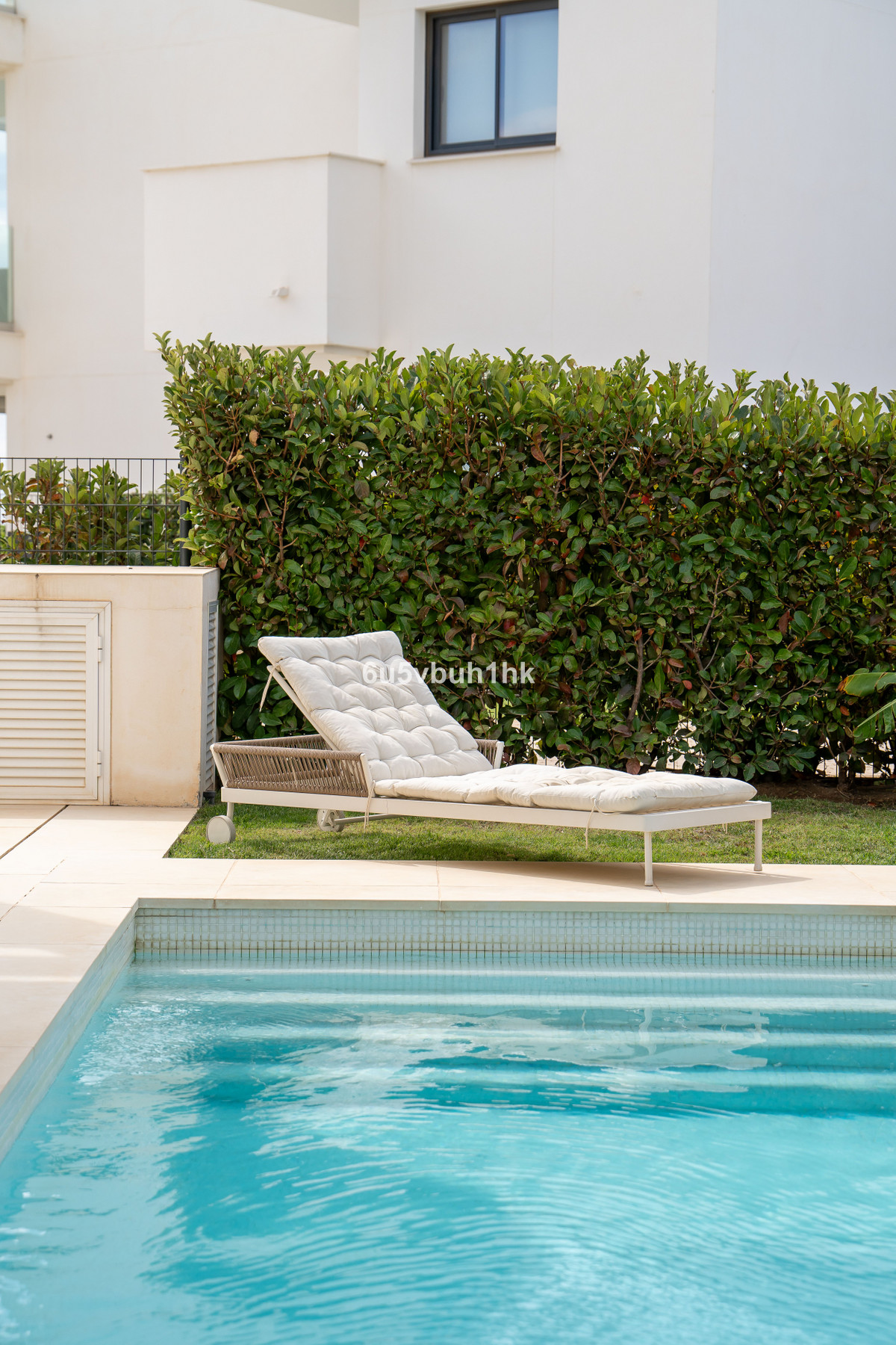 Det ljusa vardagsrummet med öppen planlösning kompletteras av ett topputrustat kök med NEFF-vitvaror och exklusiva bänkskivor på både köksö och arbetsytor. Härifrån kliver du ut i den privata trädgården med direkt tillgång till föreningens poolområde. Uteplatsen är skapad för maximal njutning och erbjuder en 20 m² uppvärmd pool (Luxury Edition), ett fullt utrustat utekök med grill, samt elstyrda markiser med sol- och vindsensorer.