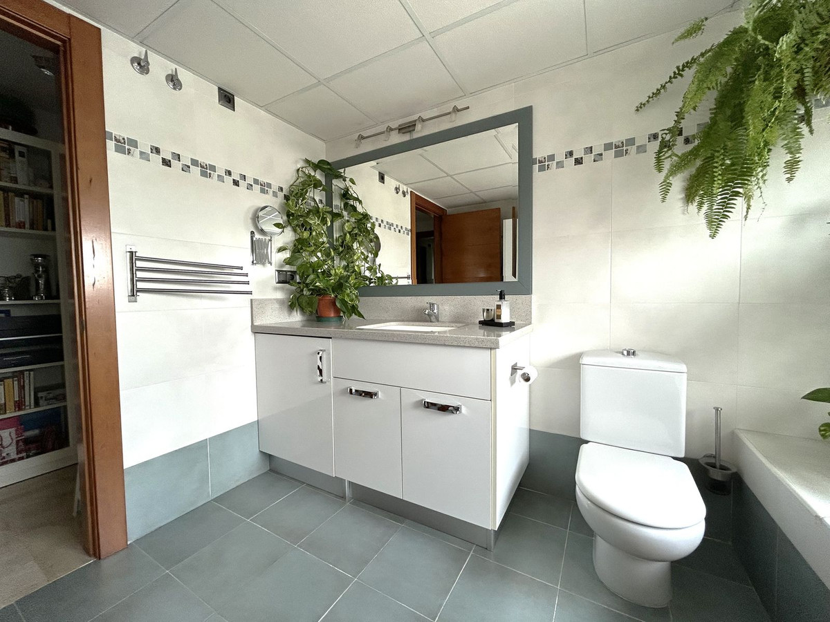 The apartment, located on the third floor with an elevator, is completely exterior and has large windows, including in the kitchen and bathroom, providing plenty of light even on the cloudiest days. Its magnificent orientation allows you to enjoy the outdoor areas both in summer and winter. The exterior is equipped with five awnings (three in the front and two in back) that provide magnificent shade, necessary on warm summer days. The rear terrace has indirect lighting (outdoor spotlights) and automatic watering equipment for plants, even reaching the pots in the kitchen window. Inside, the home also features hot/cold air conditioning and an Air Zone device to independently control the temperature of each room. The flooring is marble, and the windows are double-glazed aluminium.
